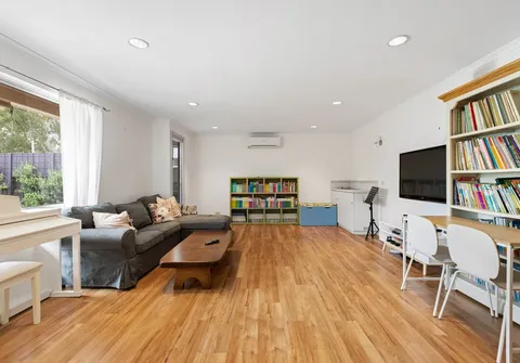 - Large detached rumpus room with split system air conditioner, wash closet, and kitchen sink