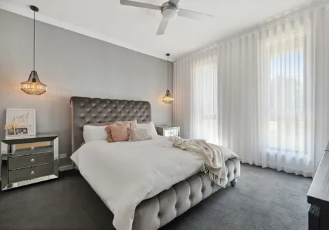 - Commodious master with ceiling fan, dreamy walk-in robe and timeless ensuite offering his and hers basins