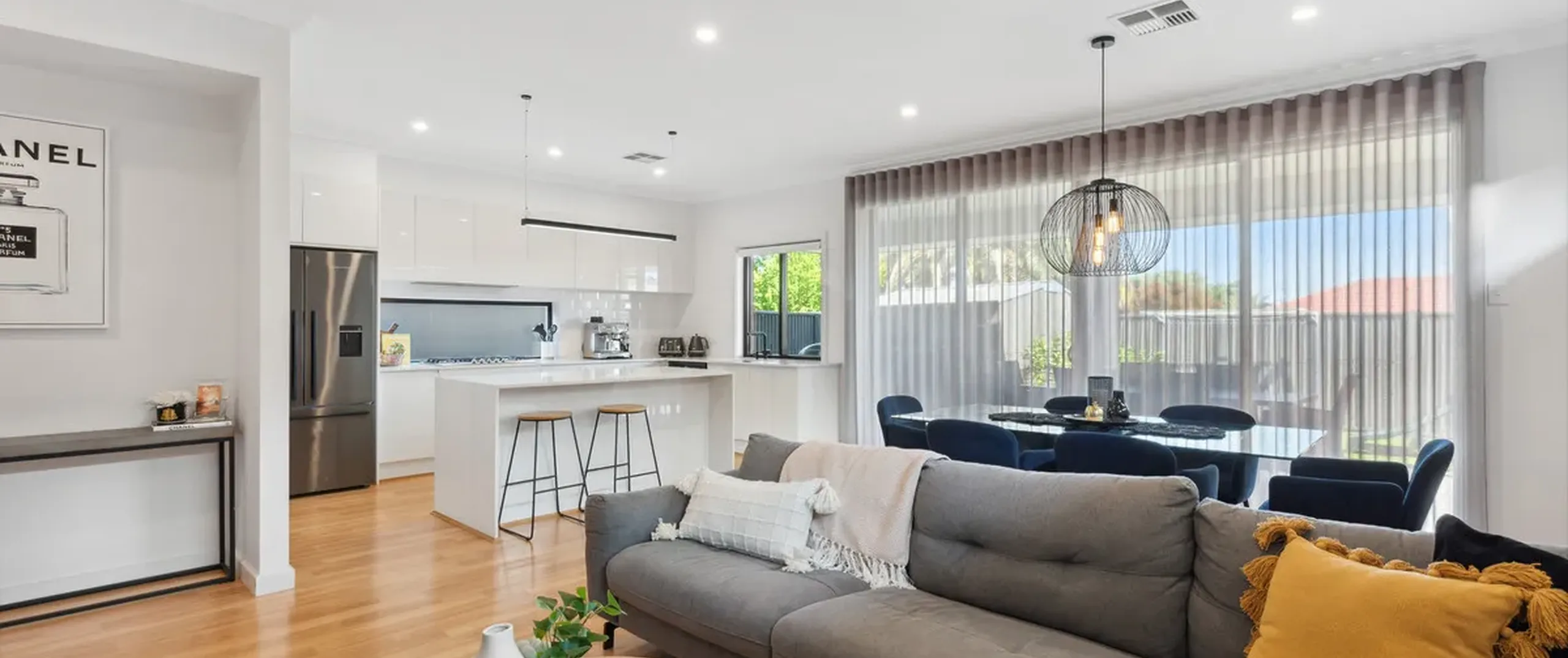 - Open plan kitchen, living and dining space with sliding doors flowing seamlessly through to the alfresco