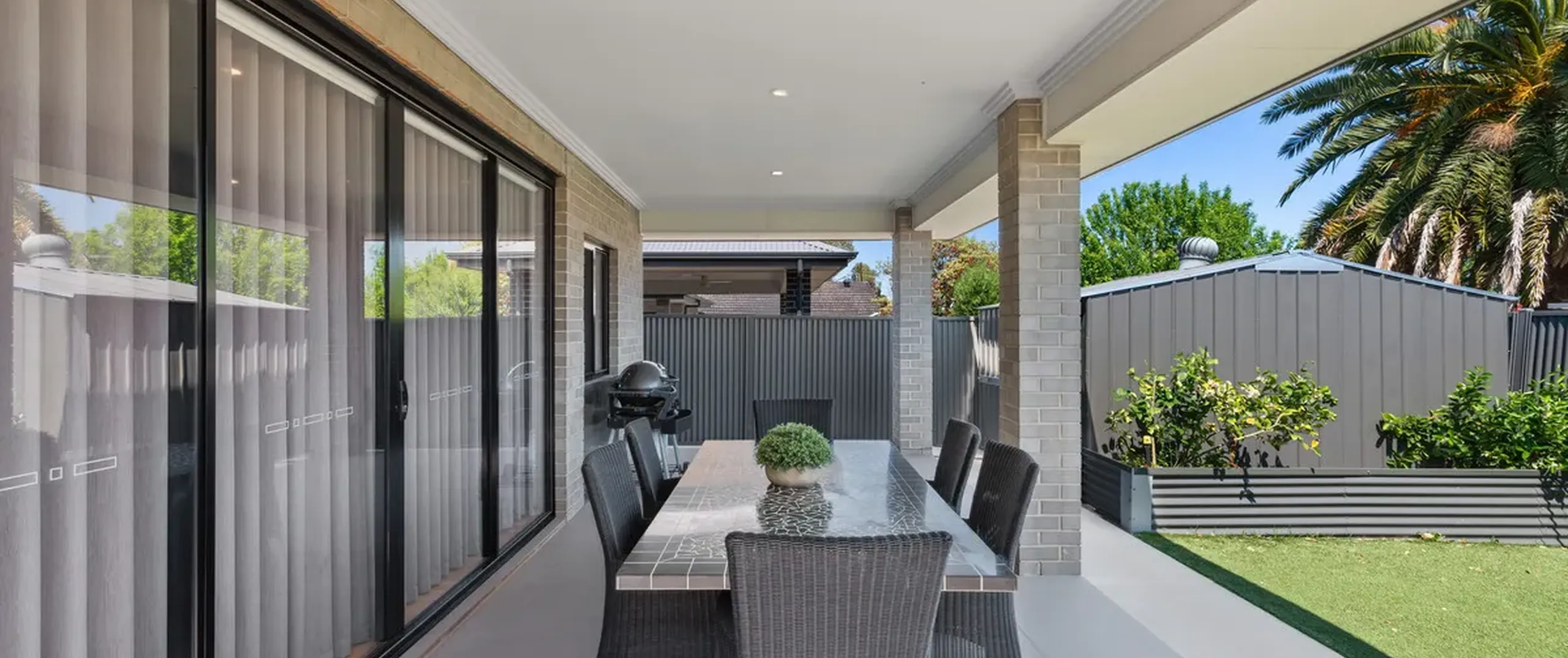 - Tiled alfresco area overlooking grassed area where kids and pets can play