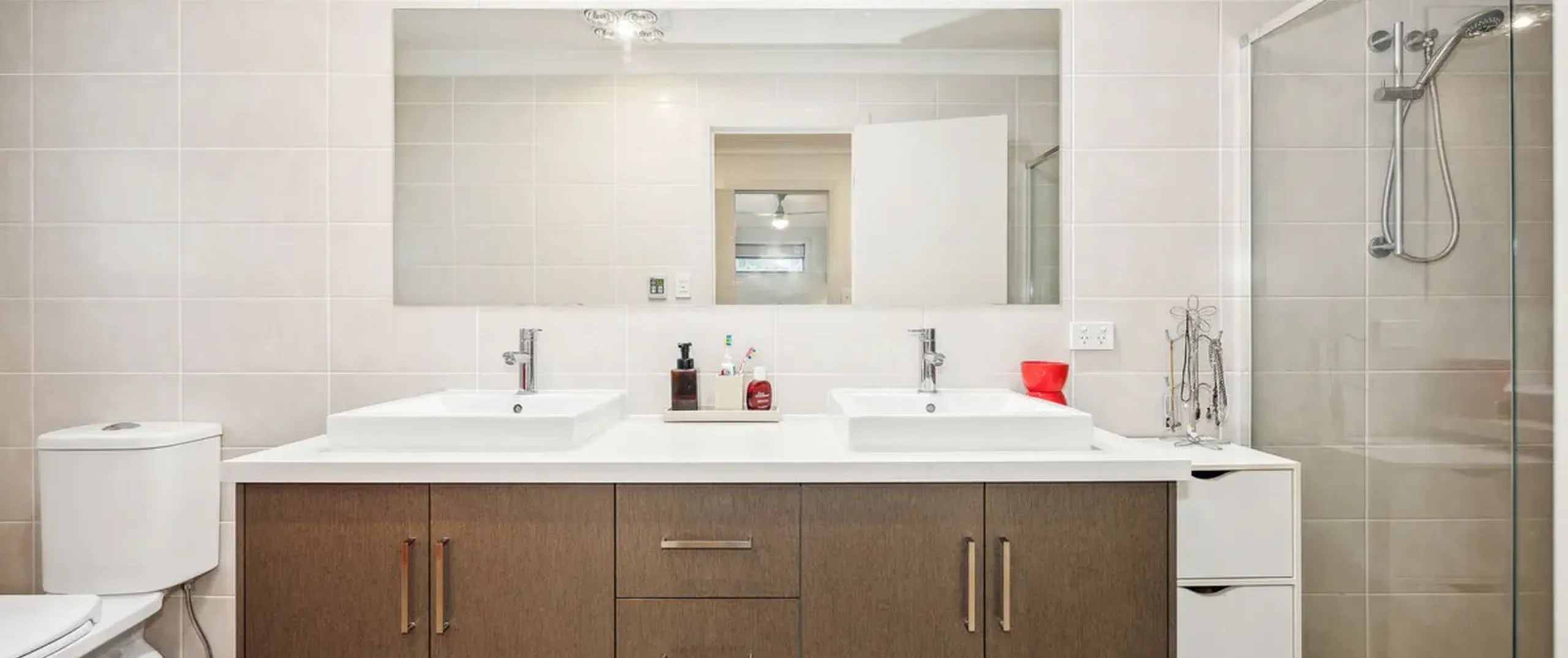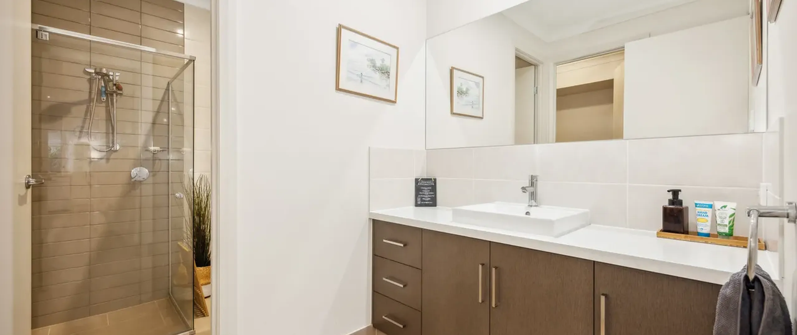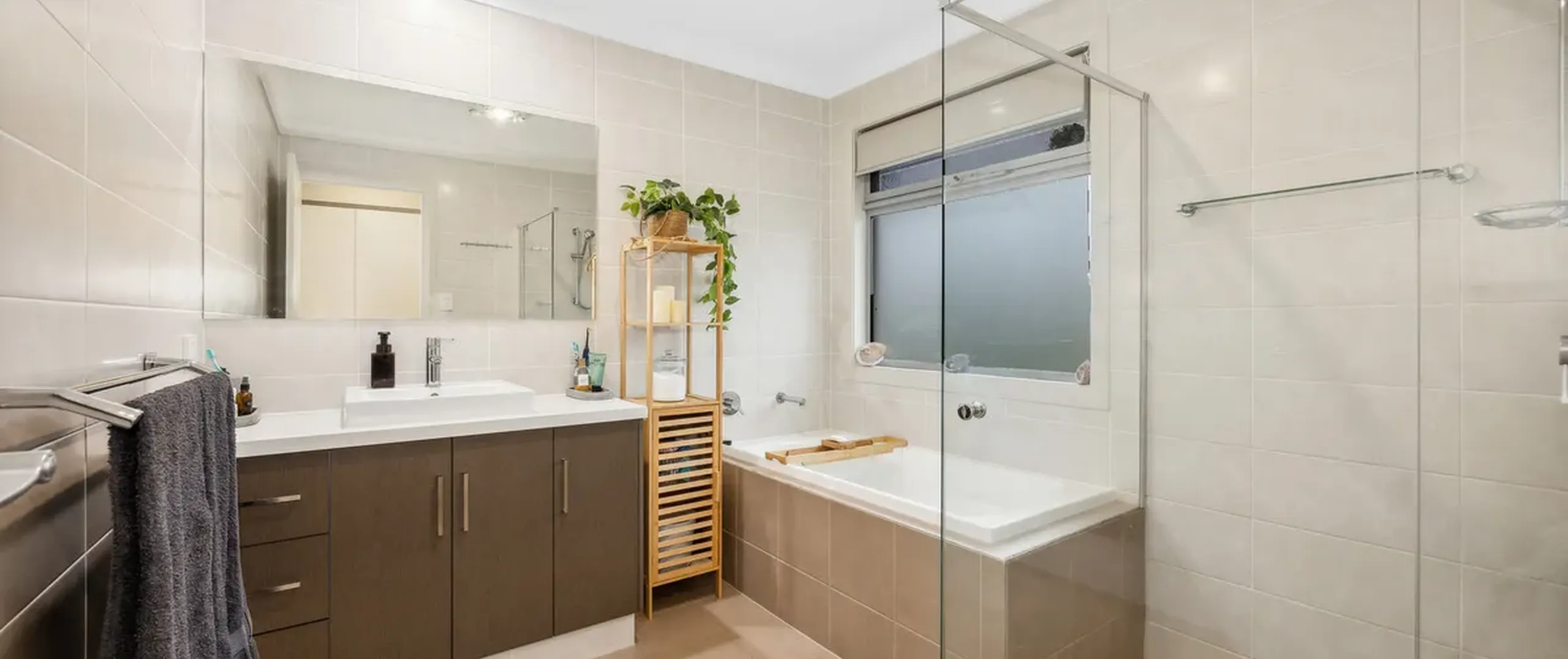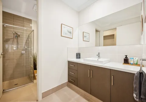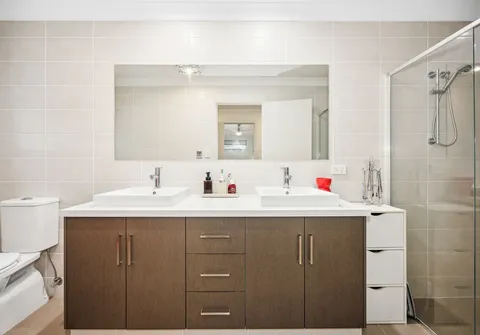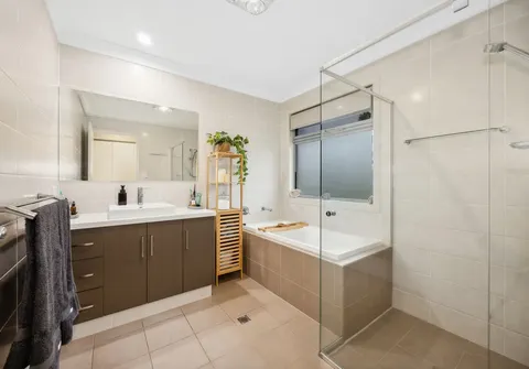 - Master bedroom, with ceiling fan, his and hers walk in robe and modern ensuite featuring floor to ceiling tiles and dual basins