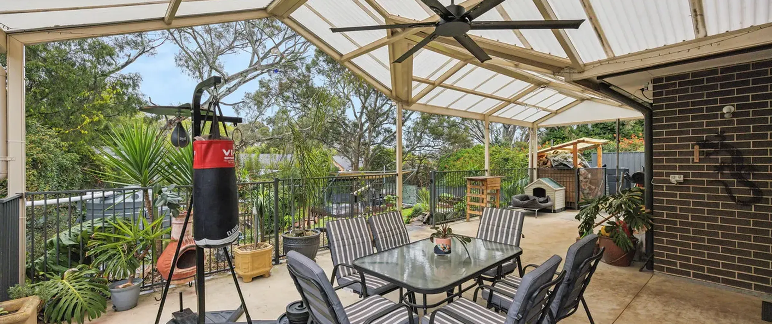 - Expansive verandah with a pitched roof and ceiling fan, making entertaining a dream