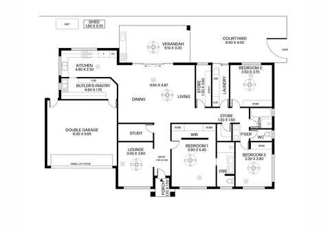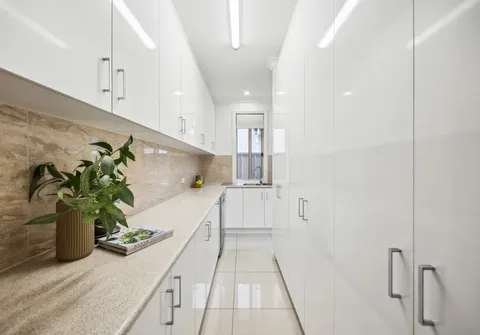 - Laundry with plenty of bench and cupboard space and direct rear access