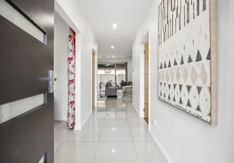 Welcome to this impressive open-plan family entertainer, built in 2016, perfectly situated on a meticulously landscaped corner allotment. The property boasts a striking facade, complemented by a manicured front garden, a secure front fence, and an automatic electric gate leading to the double garage.