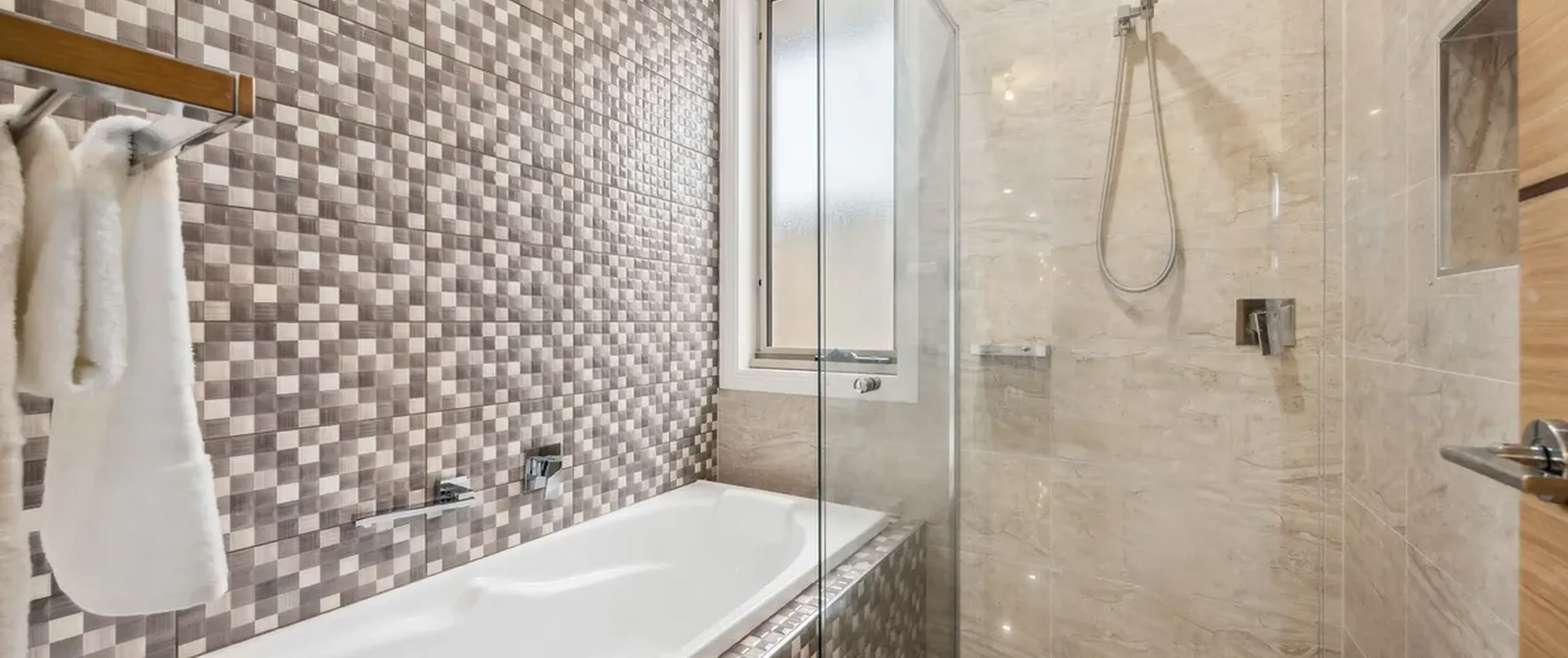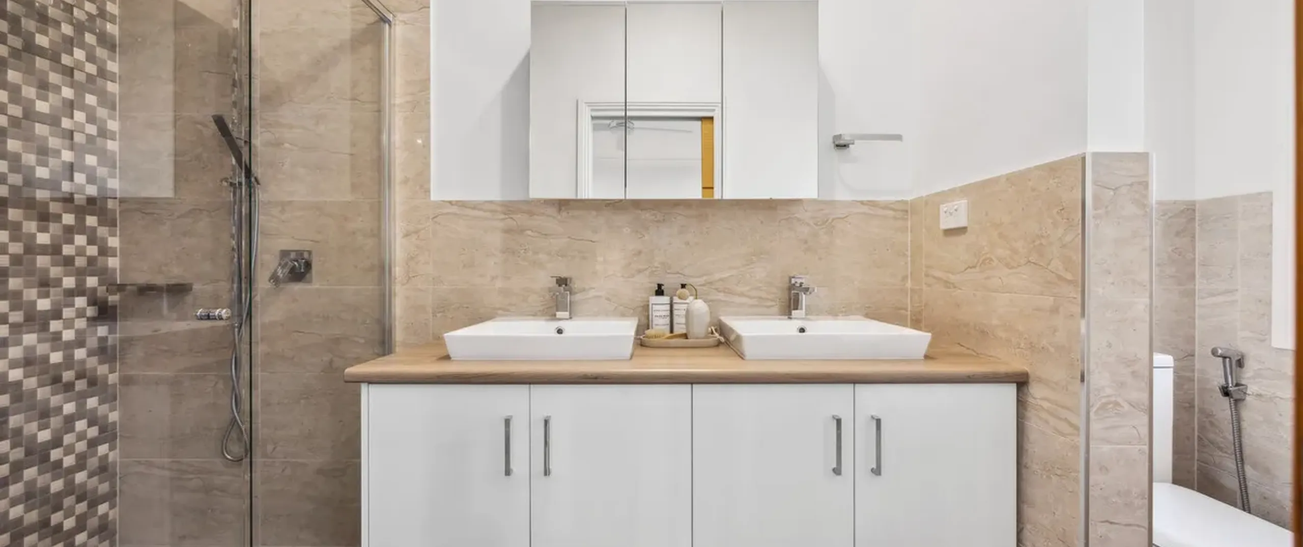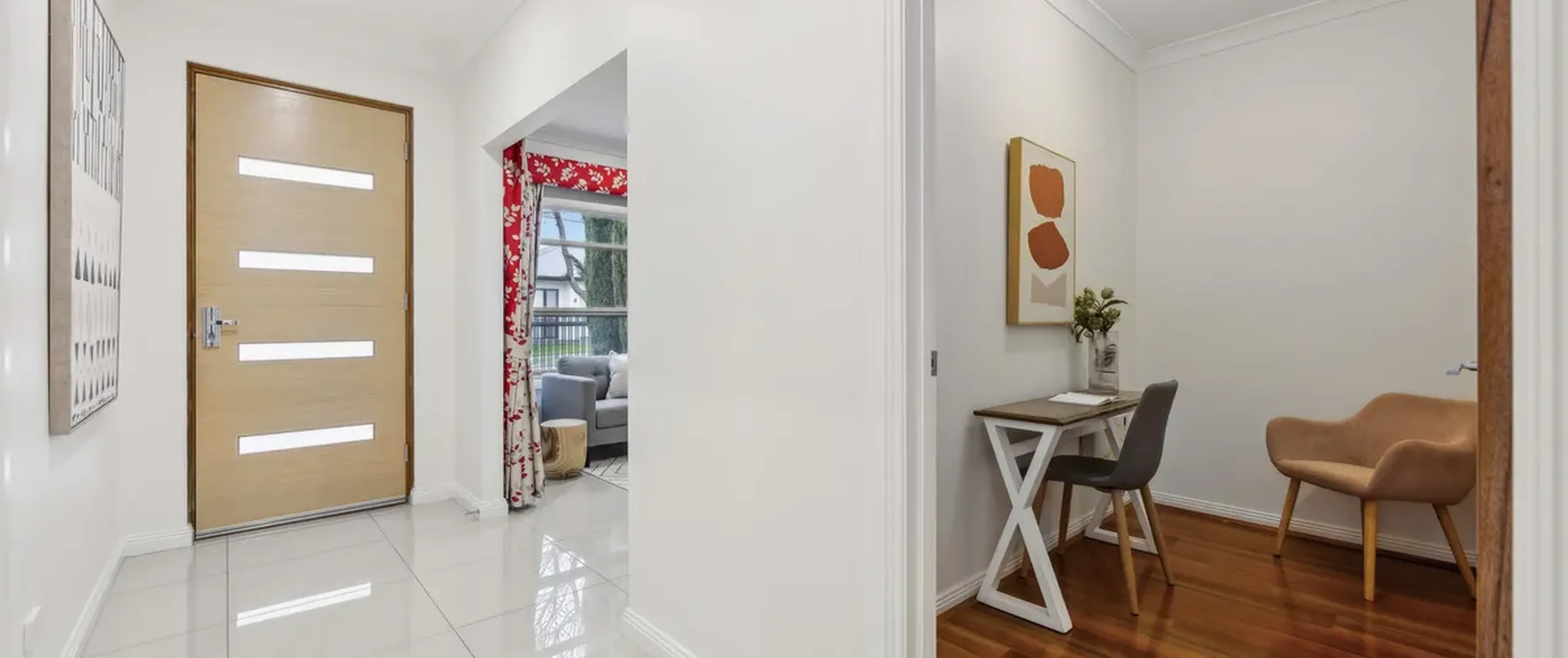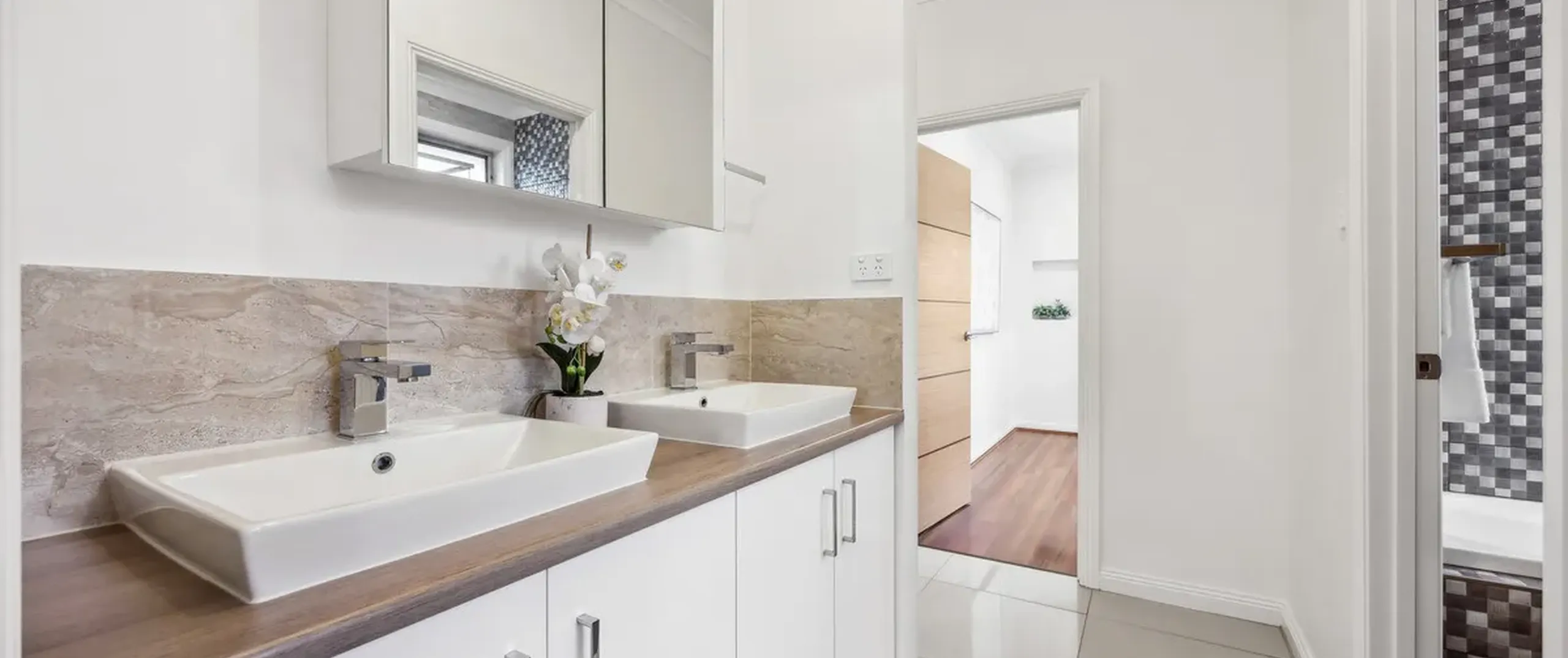 - Beautiful wooden floors in bedrooms and contemporary tiling in living areas