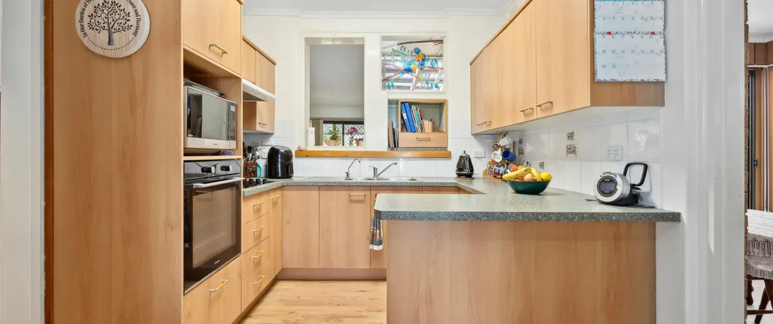 - Kitchen with skylight, breakfast bar and ample bench and cupboard space