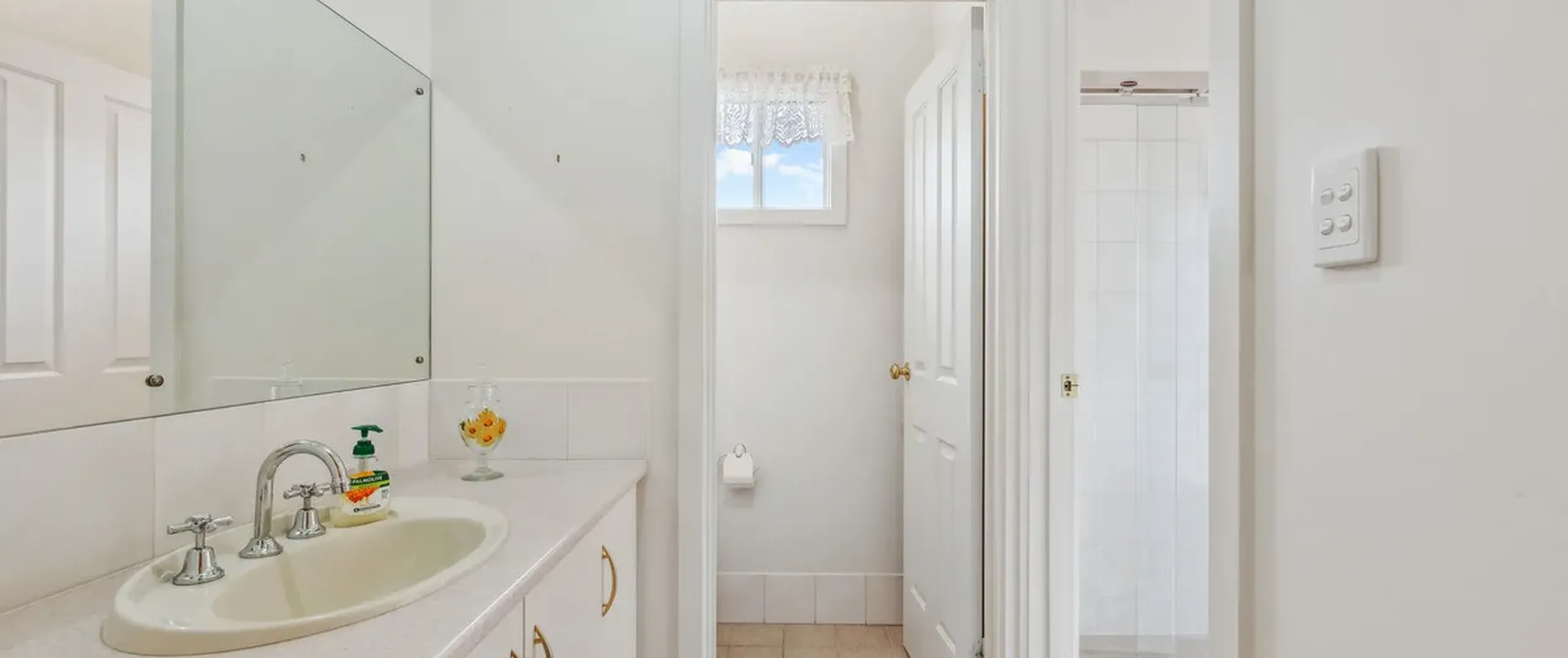 - Two-way bathroom/ensuite to master bedroom with separate bath and shower + separate toilet