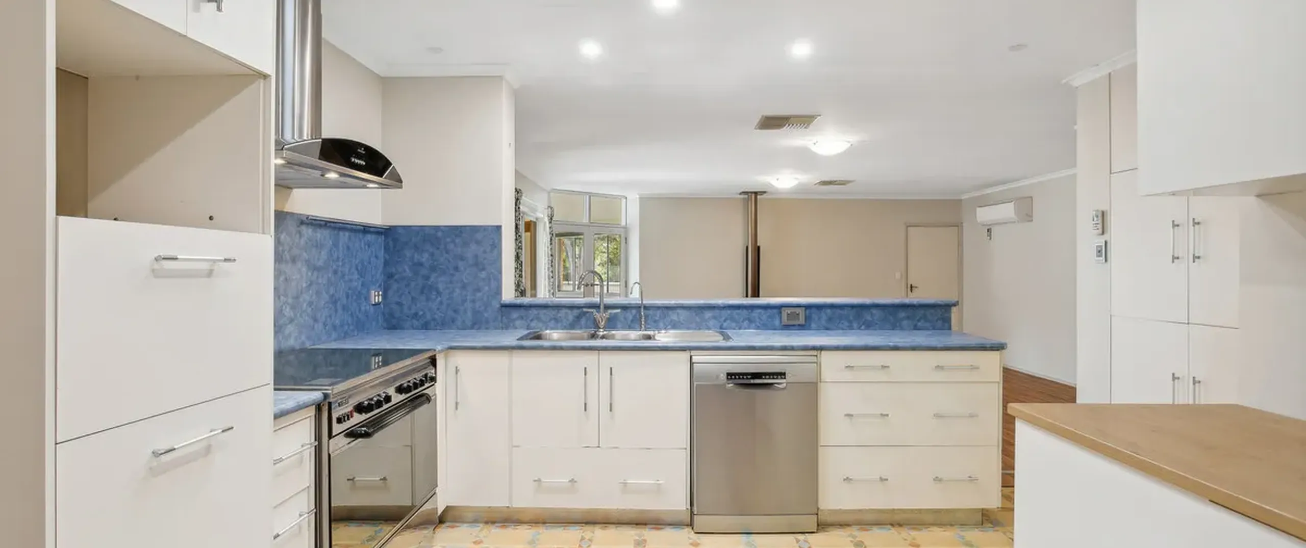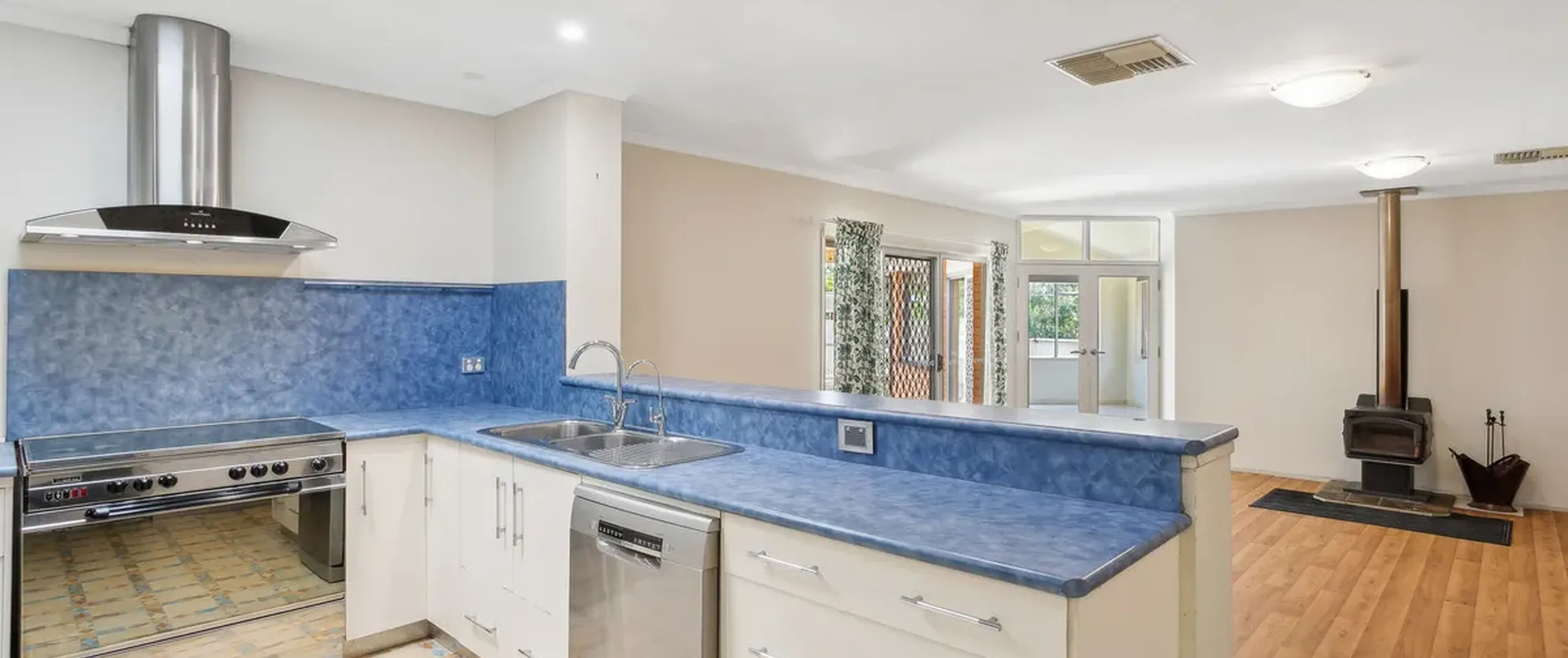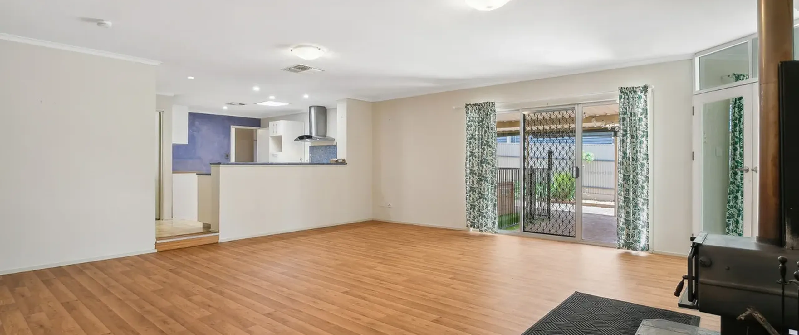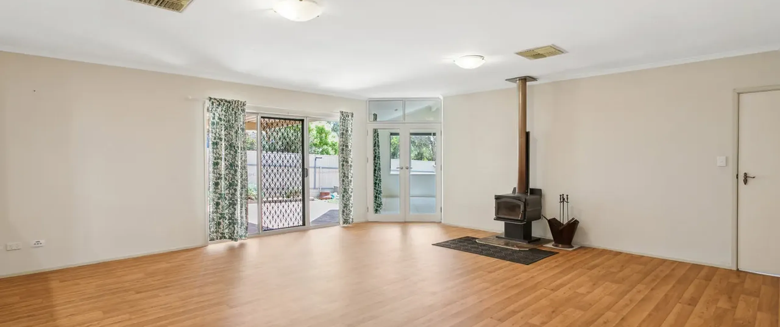 - Large family room with combustion heater and split-system air-conditioner