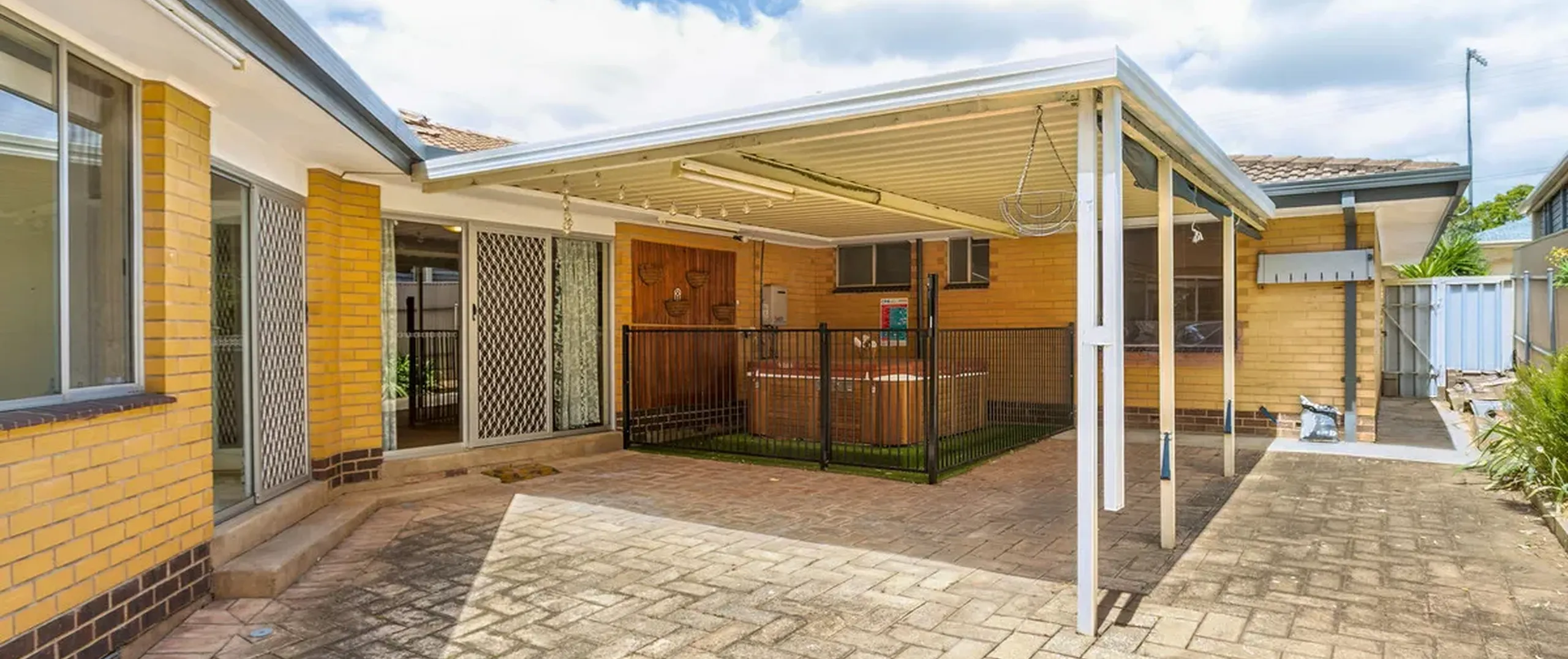 - Paved undercover entertaining area with spa and blinds