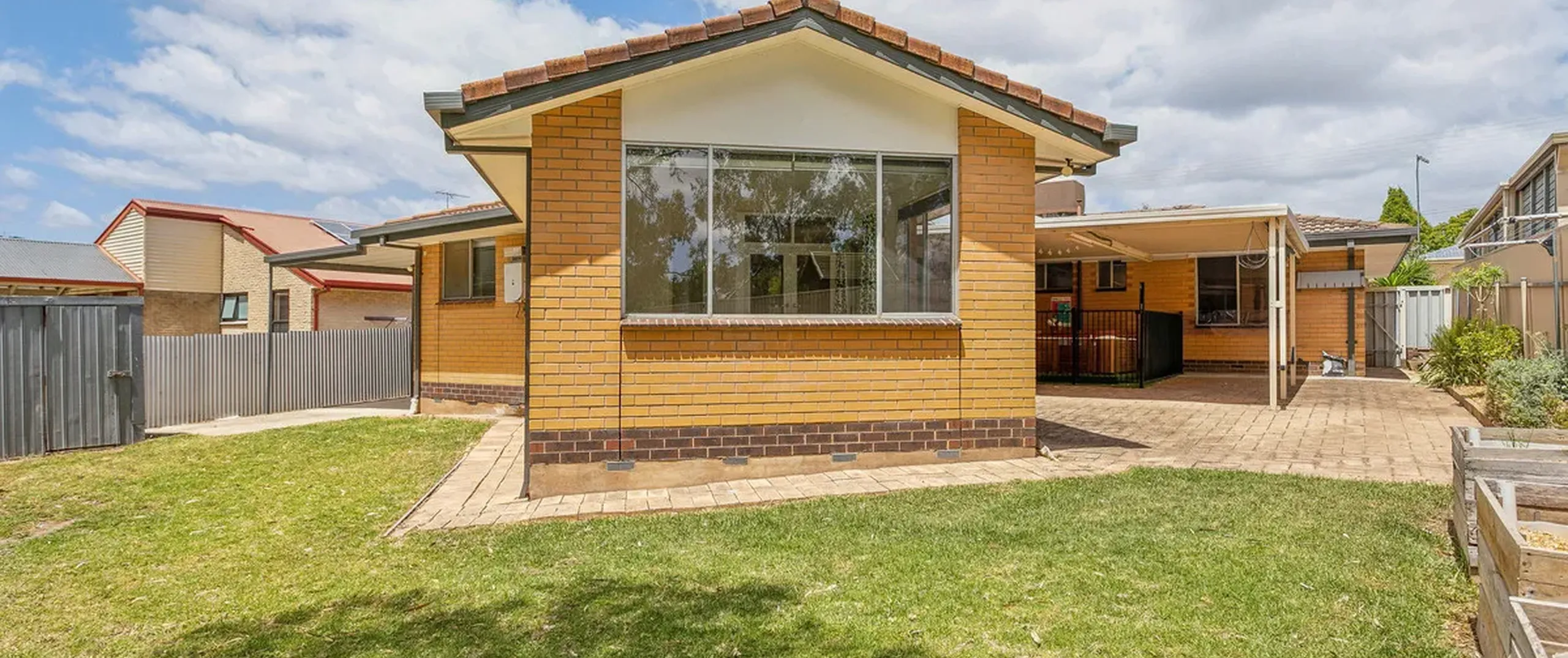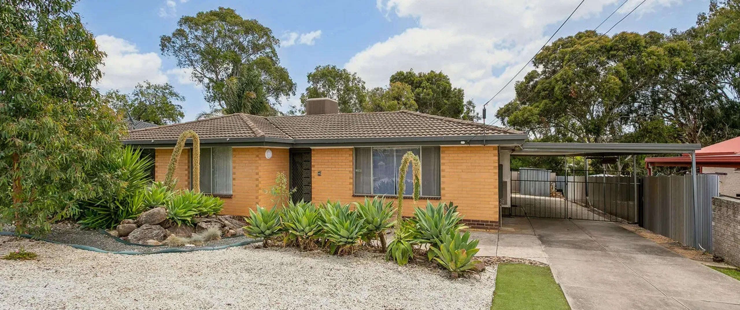 - Double-length carport with gates