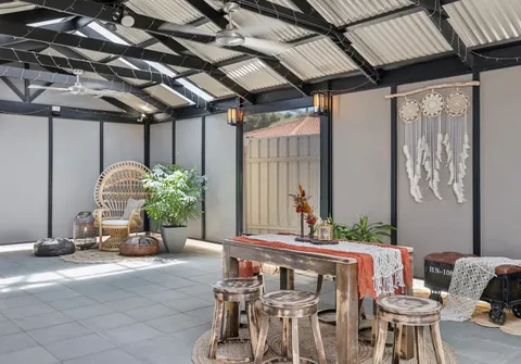 Step outside to the spacious pitched-roof verandah, equipped with two ceiling fans and blinds, providing an enclosed space ideal for year-round entertaining.