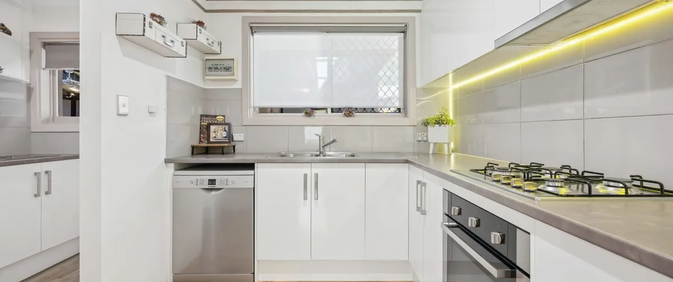 - Modern kitchen with Bosch stainless-steel dishwasher, gas cooktop, large fridge cavity, ample pantry, bench and cupboard space