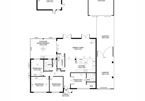 - Double length carport with roller door and drive through access to double garage with air conditioning
