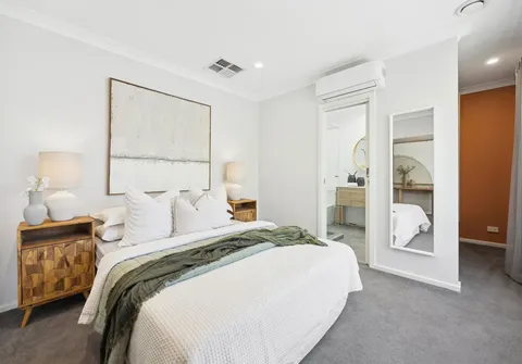 - Master bedroom featuring walk-in robe, split system air conditioner and gorgeous ensuite featuring floor to ceiling tiles and skylight
