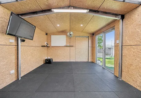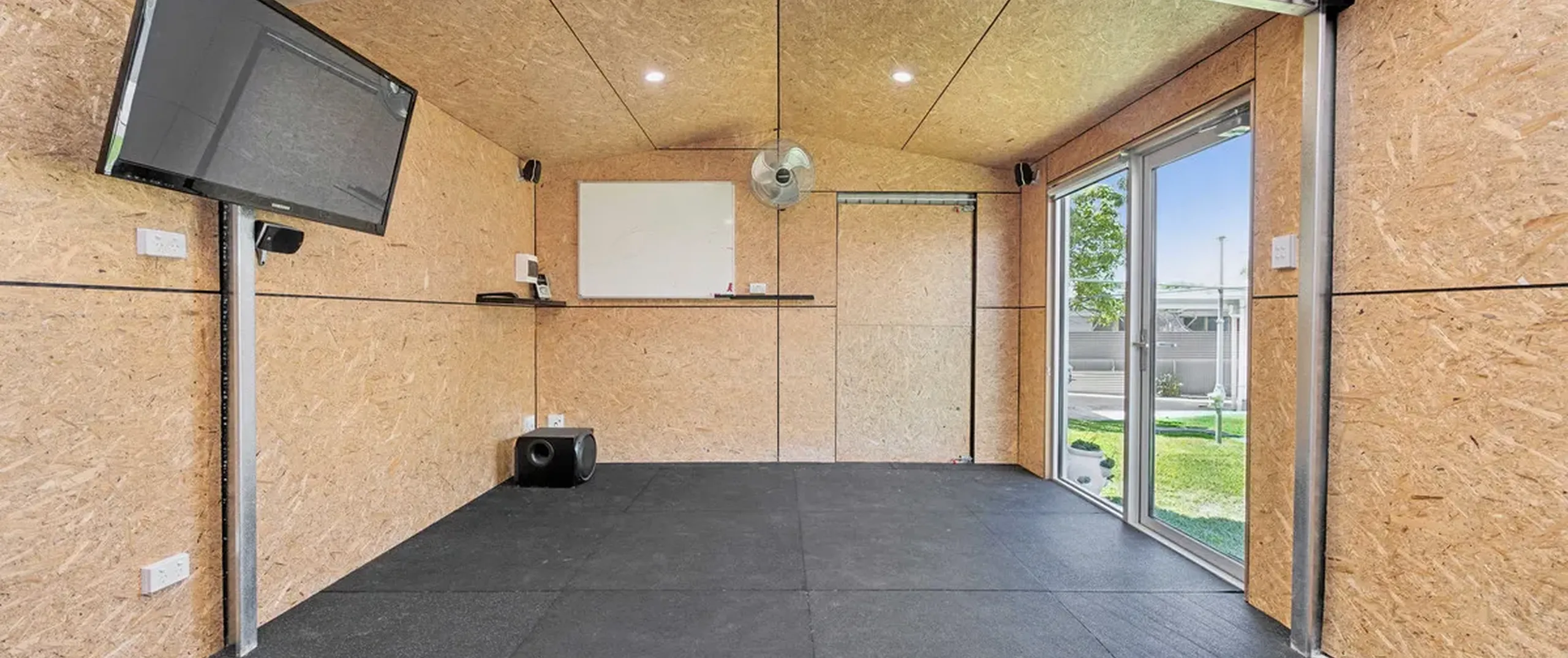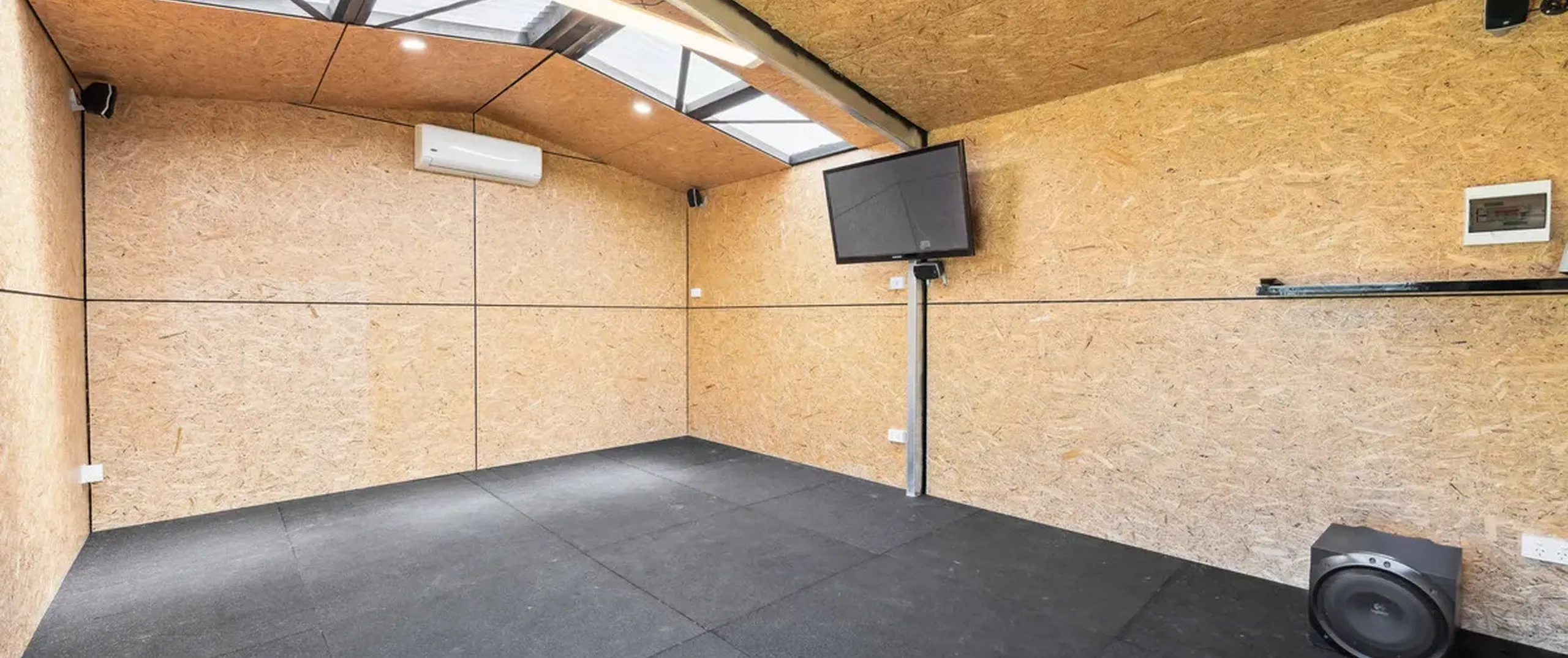 - Rumpus room at the rear of the property, including split system air conditioner, Logitech sound system and mounted Samsung TV
