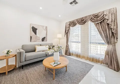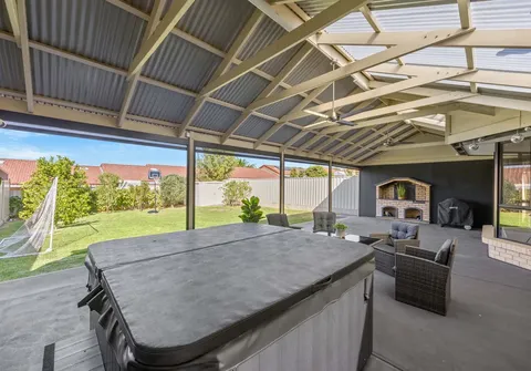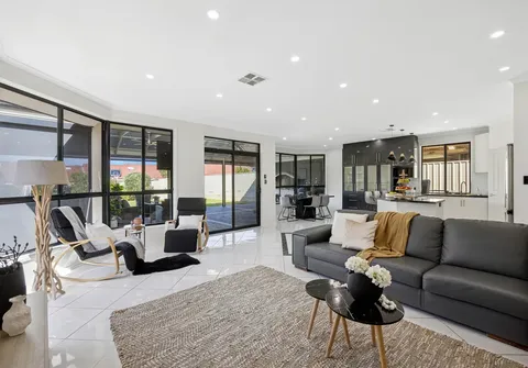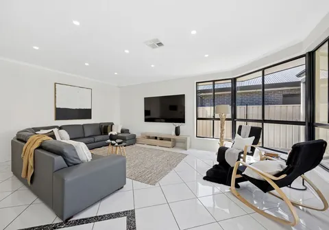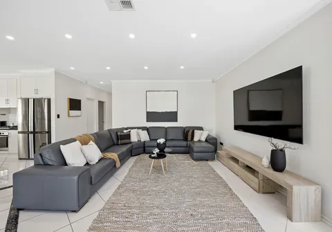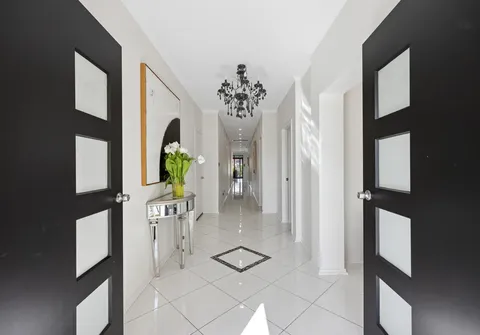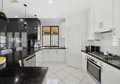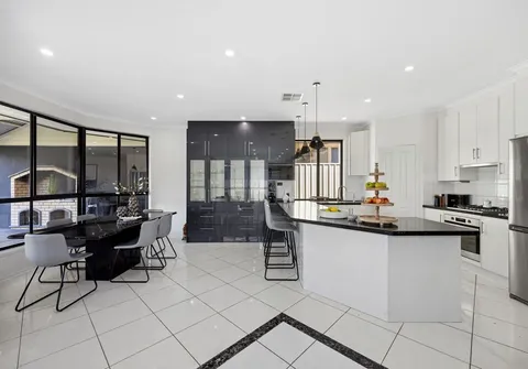Step through the dual front doors into a spacious hallway adorned with an elegant chandelier and 2.7m high ceilings, leading to a stunning open-plan kitchen, living and dining area. Beyond this, step out to an exceptional outdoor entertaining area with a pitched roof, ceiling fans, electric blinds and a built-in BBQ. From here, you can effortlessly host family and friends while keeping an eye on the kids and pets enjoying the expansive lawn. This exceptional home is completed by a second living room and four generously sized bedrooms, each with built-in robes, while the master suite boasts a walk-in robe and a private ensuite.