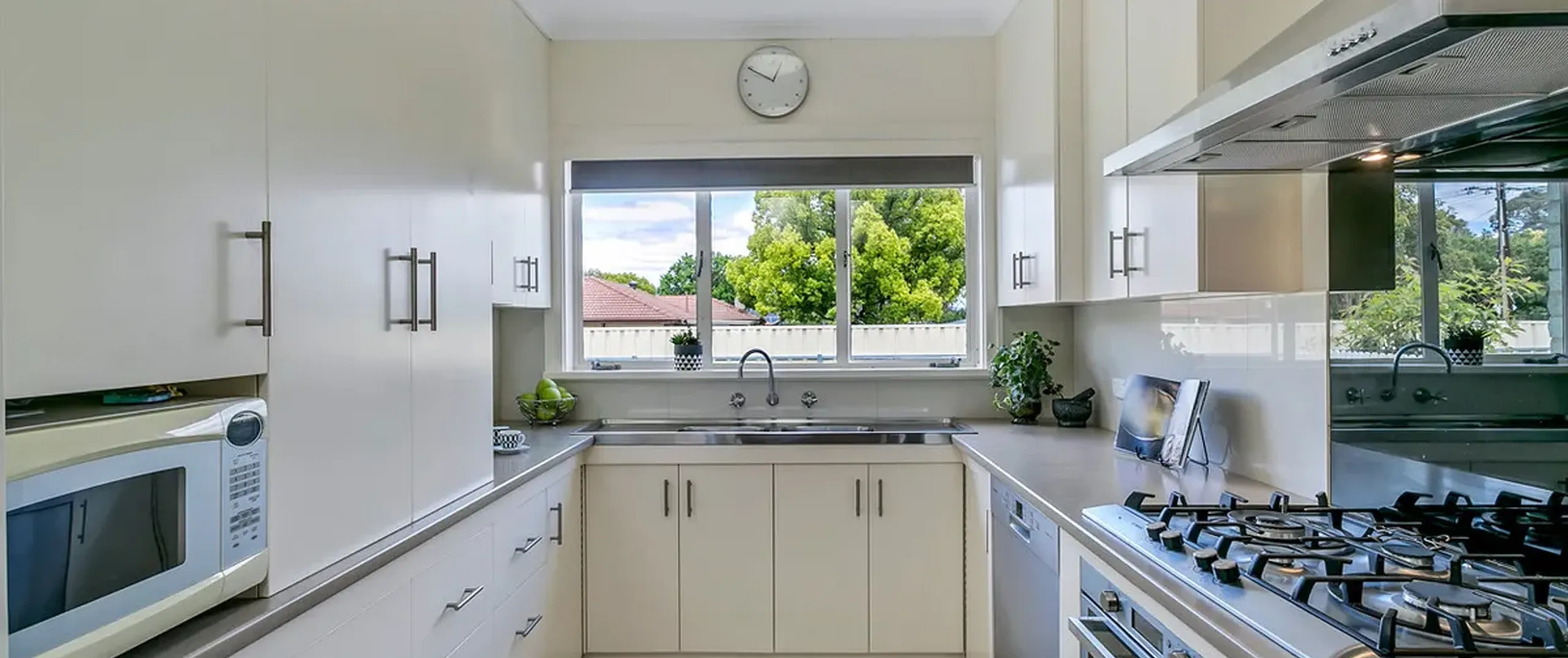 - Modern, bright kitchen with gas cooking, stainless steel appliances and ample bench and cupboard space