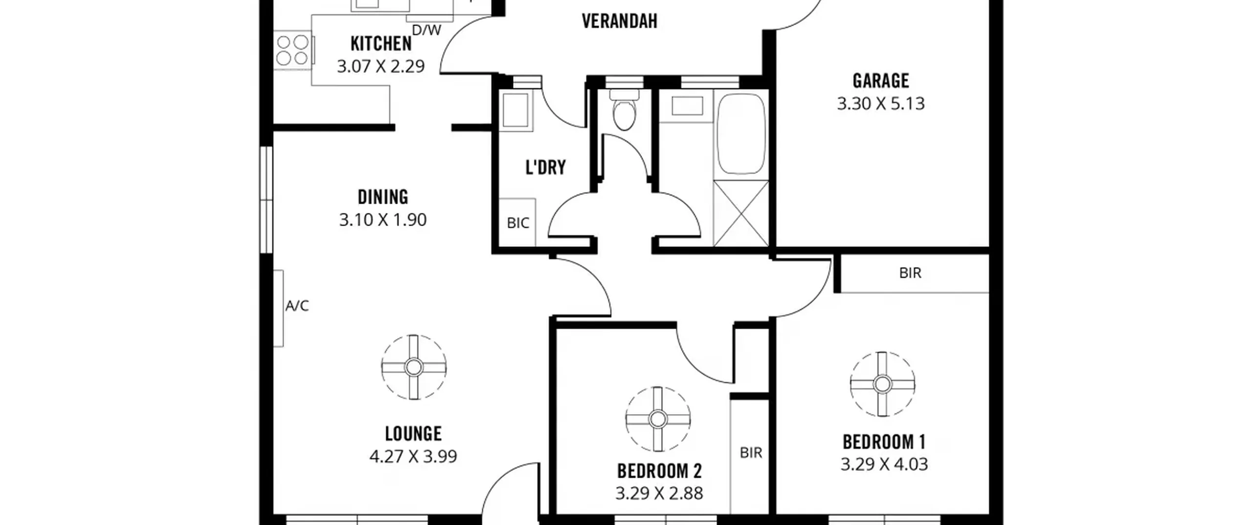 - 2 good sized bedrooms with built-in robes and ceiling fans