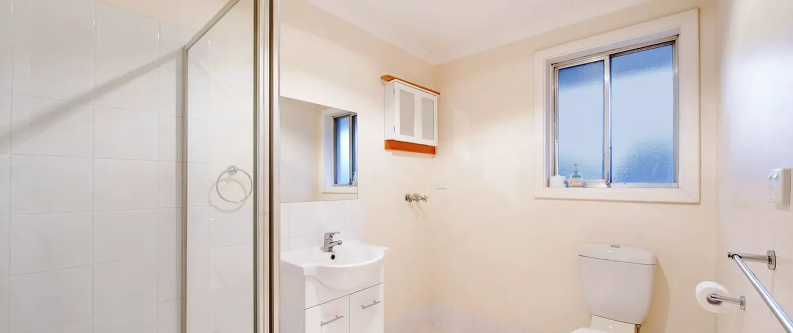 - Neat and tidy bathroom incorporating laundry