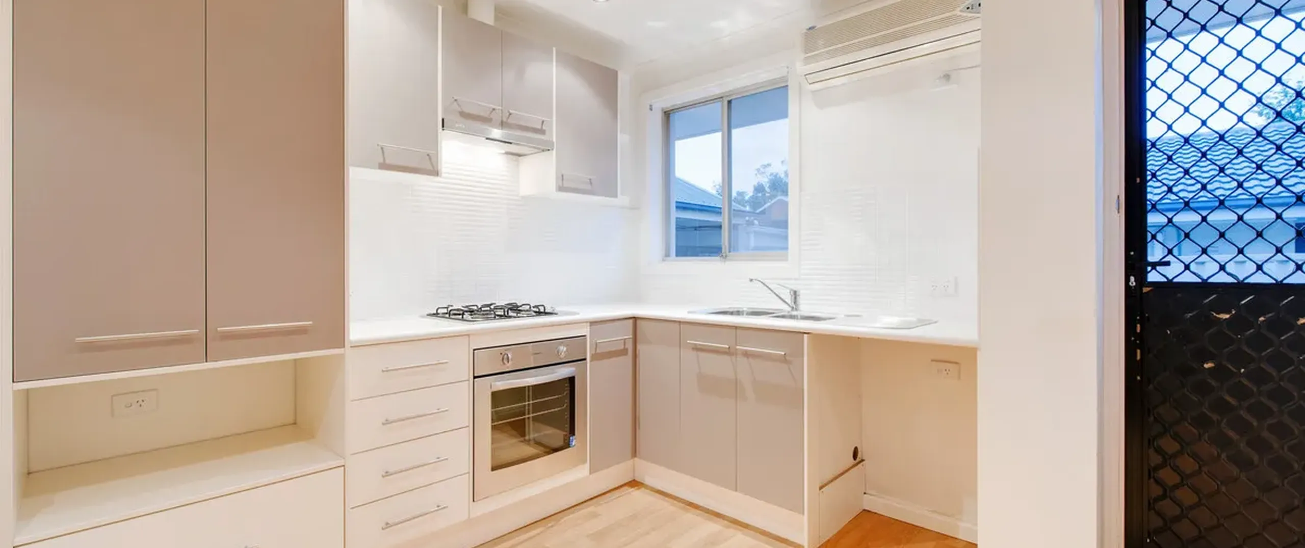 - Modern kitchen with gas cooktop and air conditioning