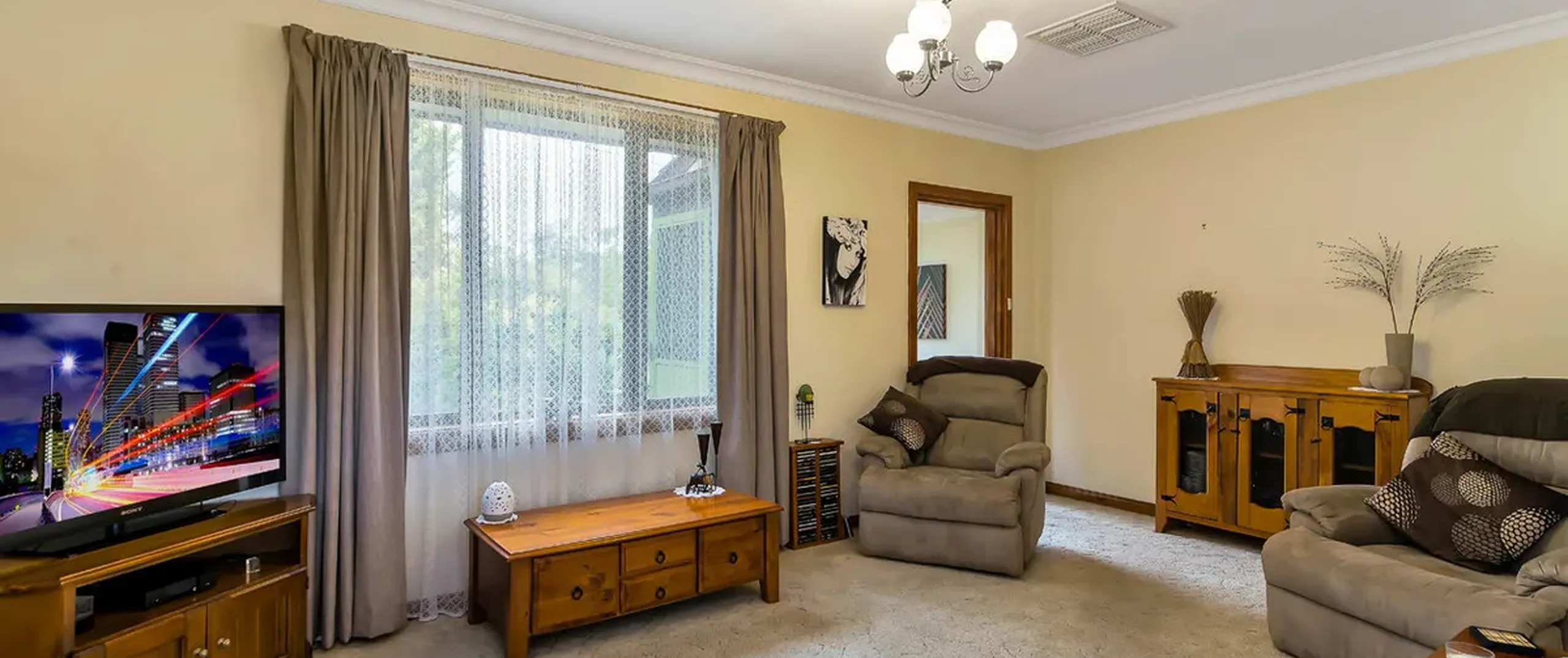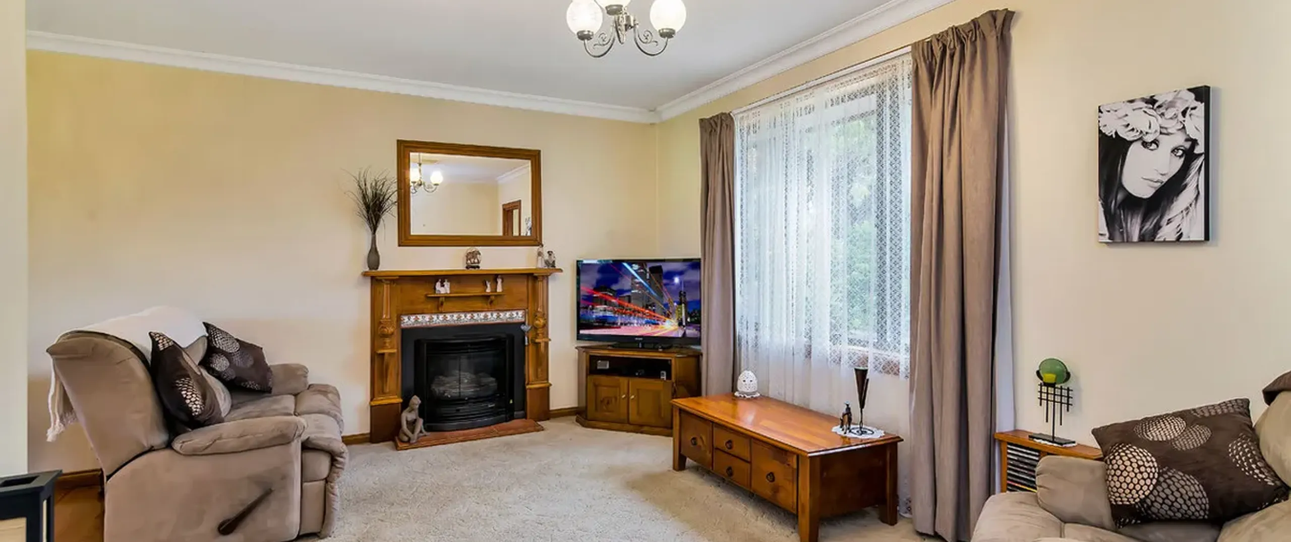 - Light filled lounge with gas heater