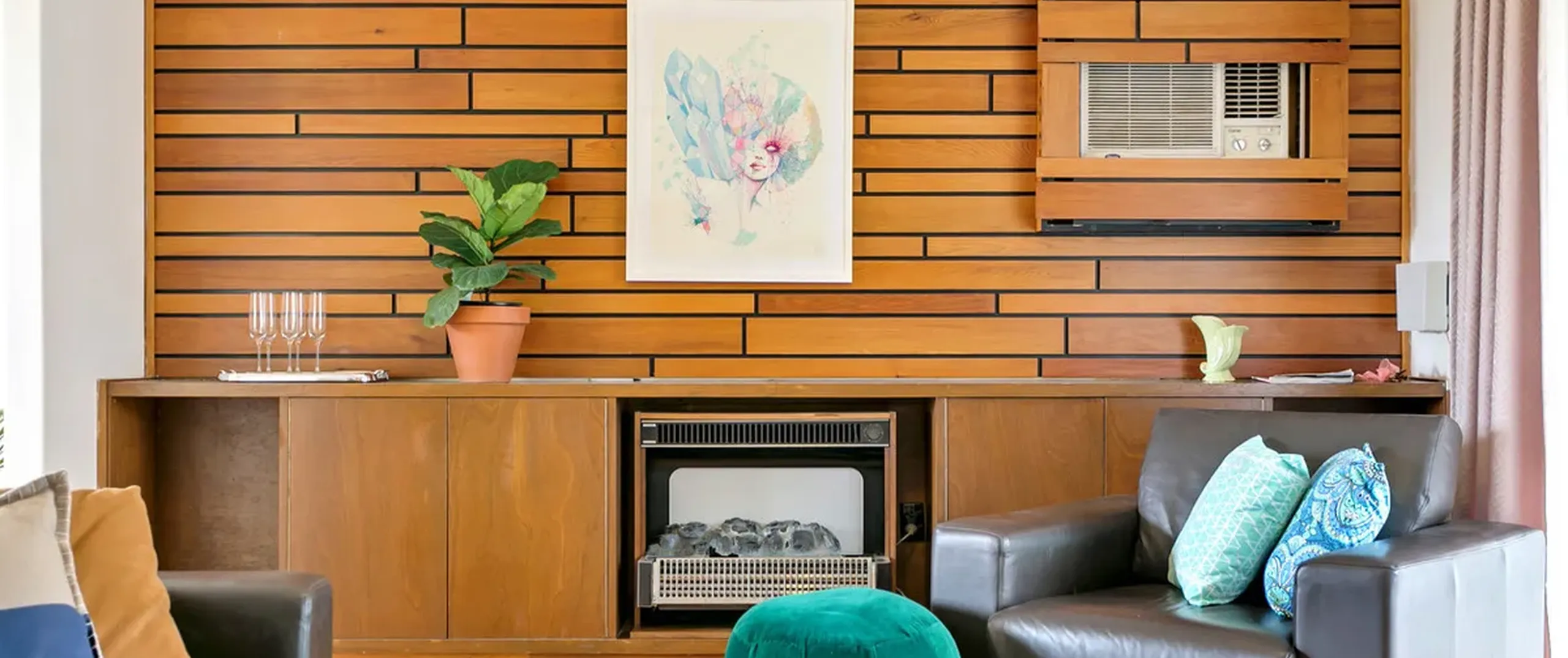 - Light filled lounge with reverse cycle air conditioner and electric heater