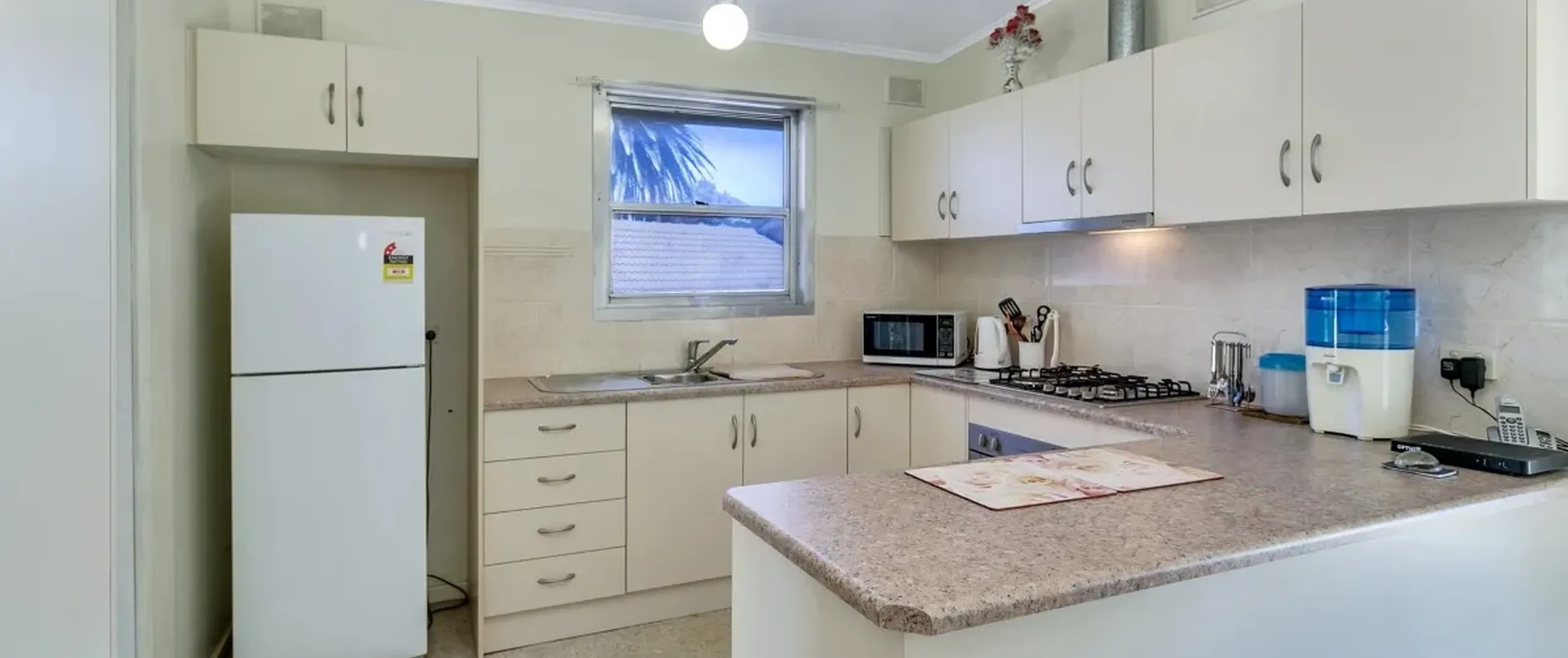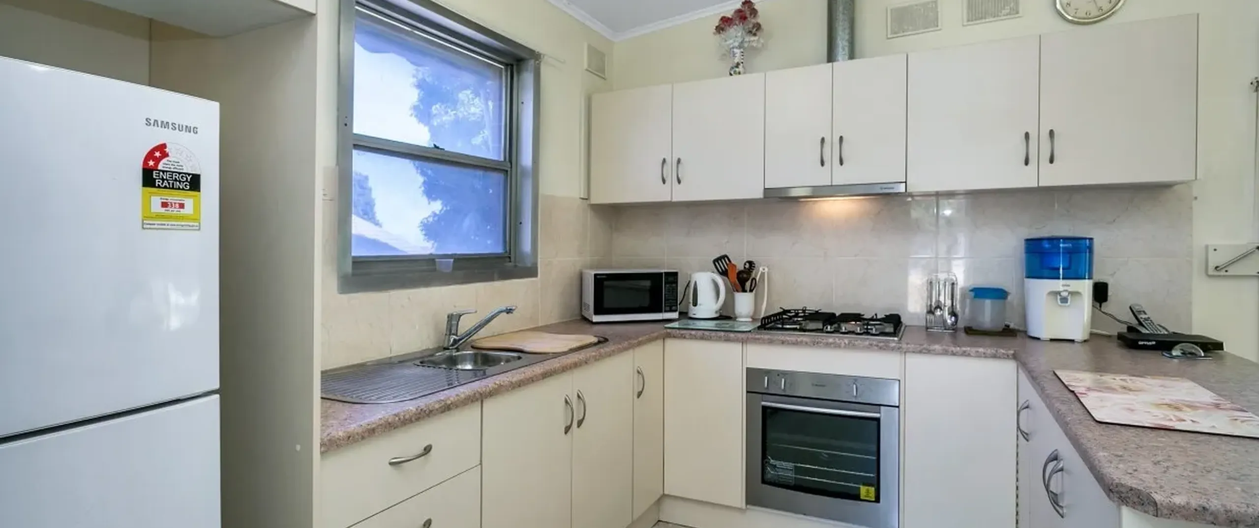 - Modern kitchen with gas cooktop and ample bench and cupboard space