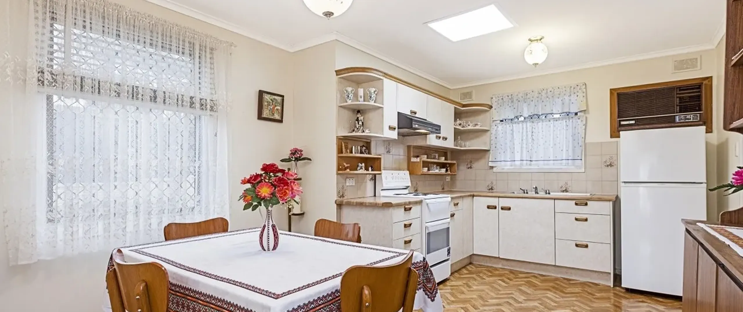 - Original kitchen and eat-in dining area with freestanding oven