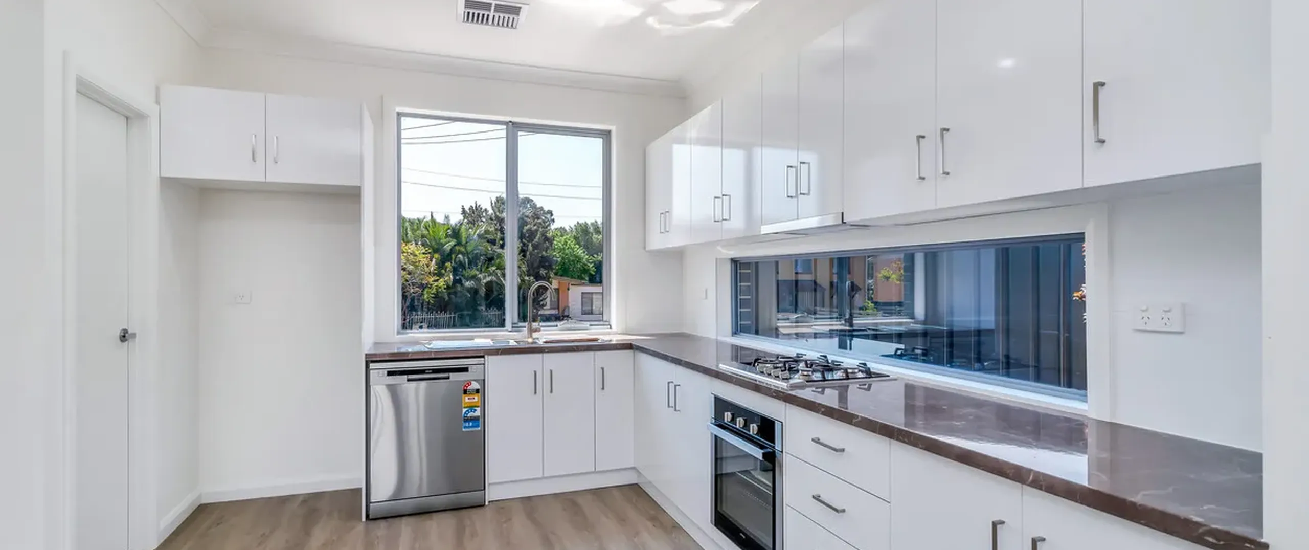 - Stylish kitchen with gas cooktop, dishwasher, walk-in pantry and window splashback