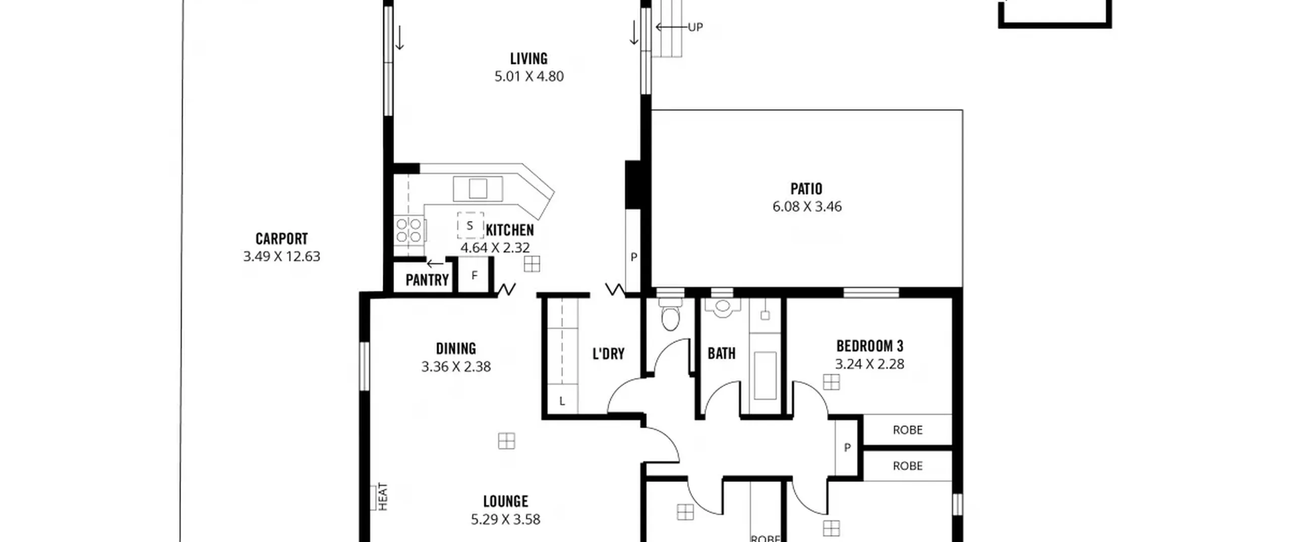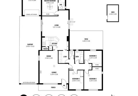 - Double length carport with automatic roller door, drive through access to shed and internal access