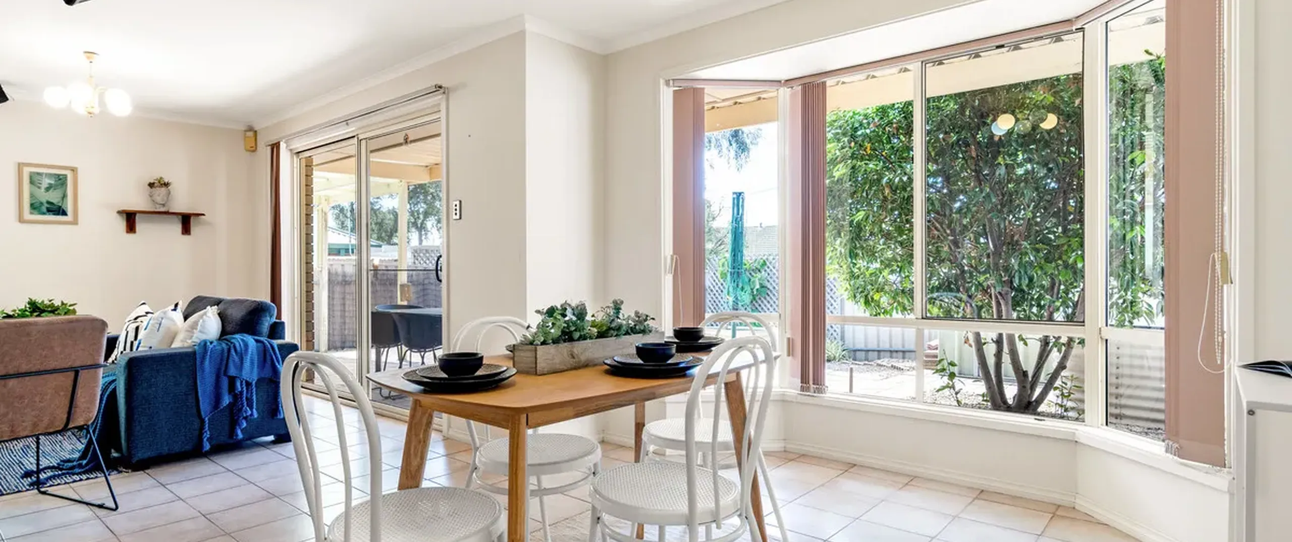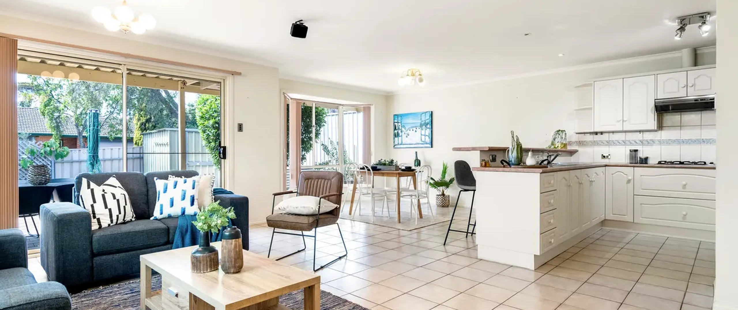 - Spacious open plan living/kitchen and dining with split system air conditioner