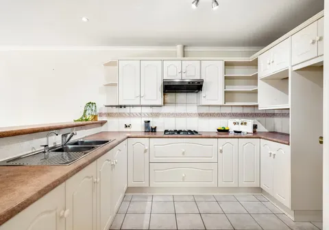 - Practical kitchen with breakfast bar, ample cupboard and bench space and large walk-in pantry