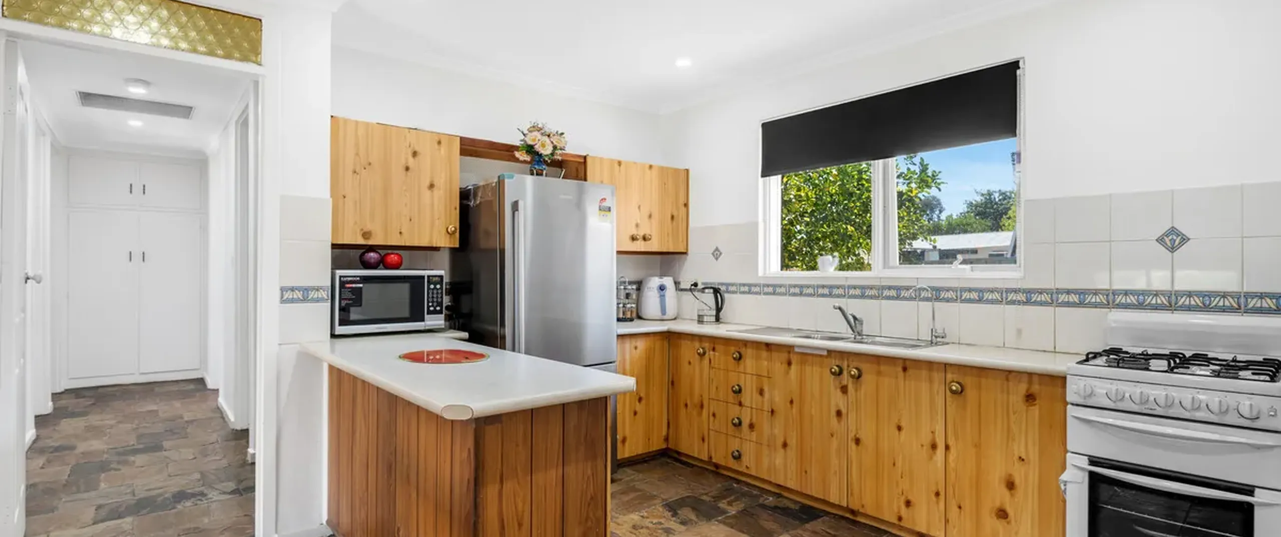 - Well-appointed kitchen with gas cooktop, ample cupboard and bench space, downlights and slate flooring