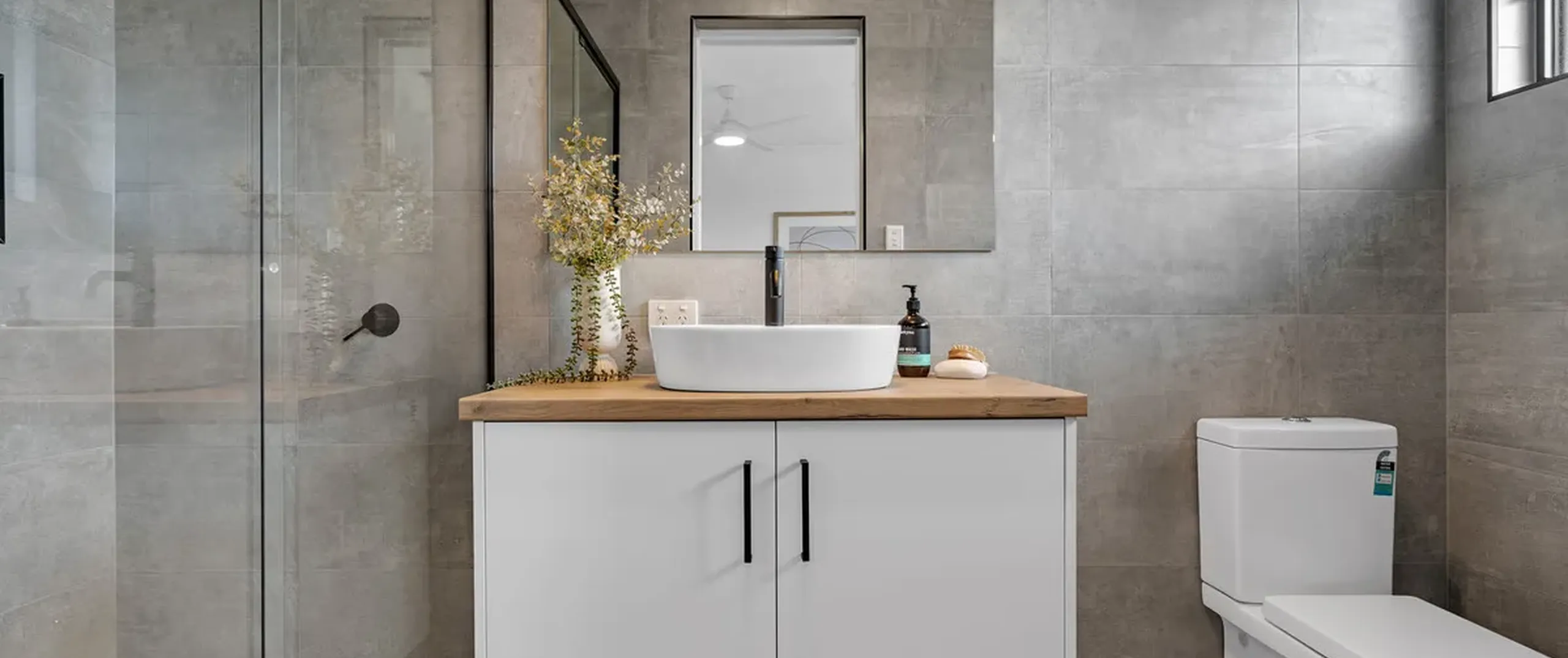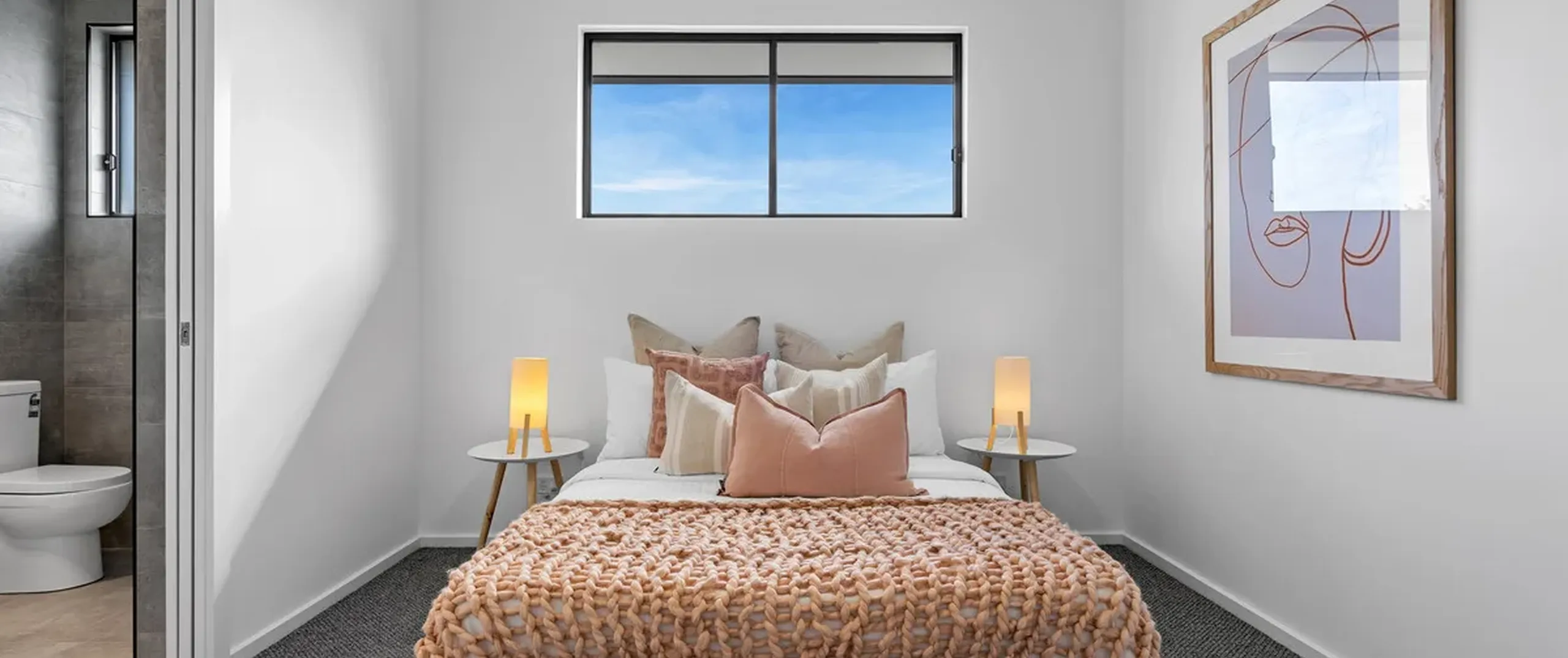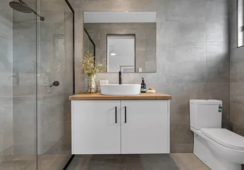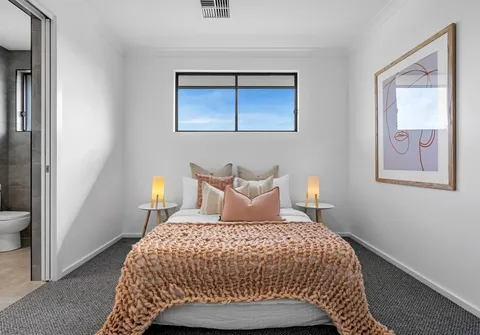 - Bedroom 1 with walk-in robe, ceiling fan and contemporary ensuite with double shower