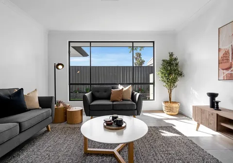 A separate lounge is nestled at the front of the home while a stylish bathroom with a bath, a good-size laundry and a double garage with internal access complete the layout. Extra features include quality fixtures and fittings throughout, plus easy-care gardens, ducted reverse cycle air conditioning and ceiling fans throughout.