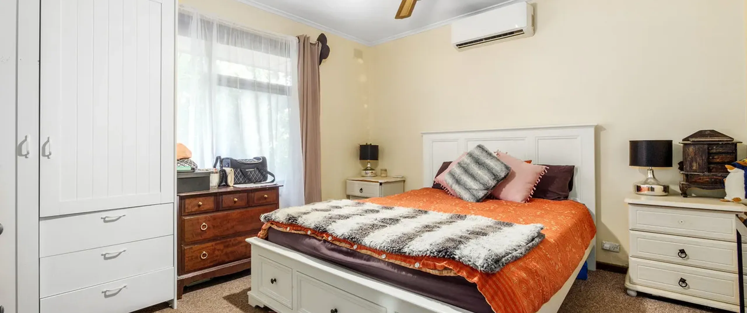 - Large master bedroom with ceiling fan and reverse cycle air conditioner