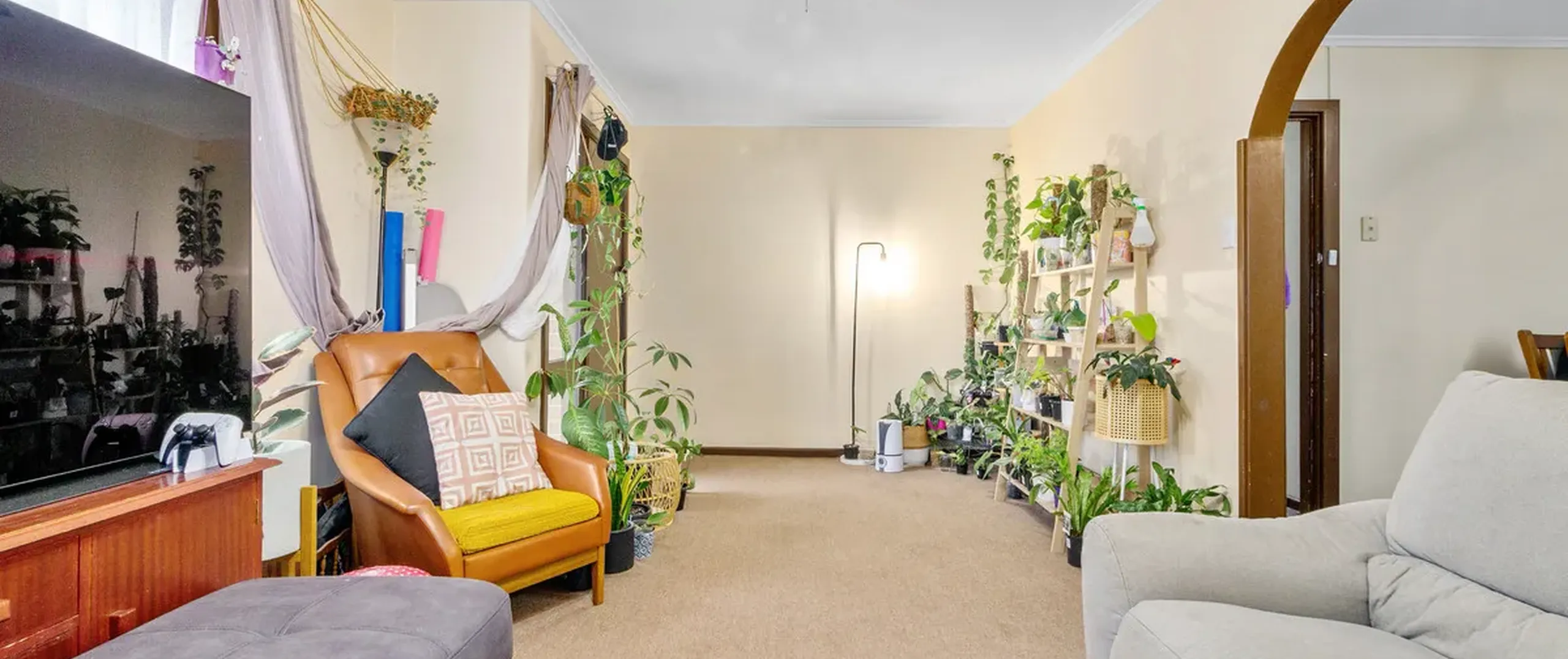 - Spacious living room with ceiling fan and reverse cycle air conditioner