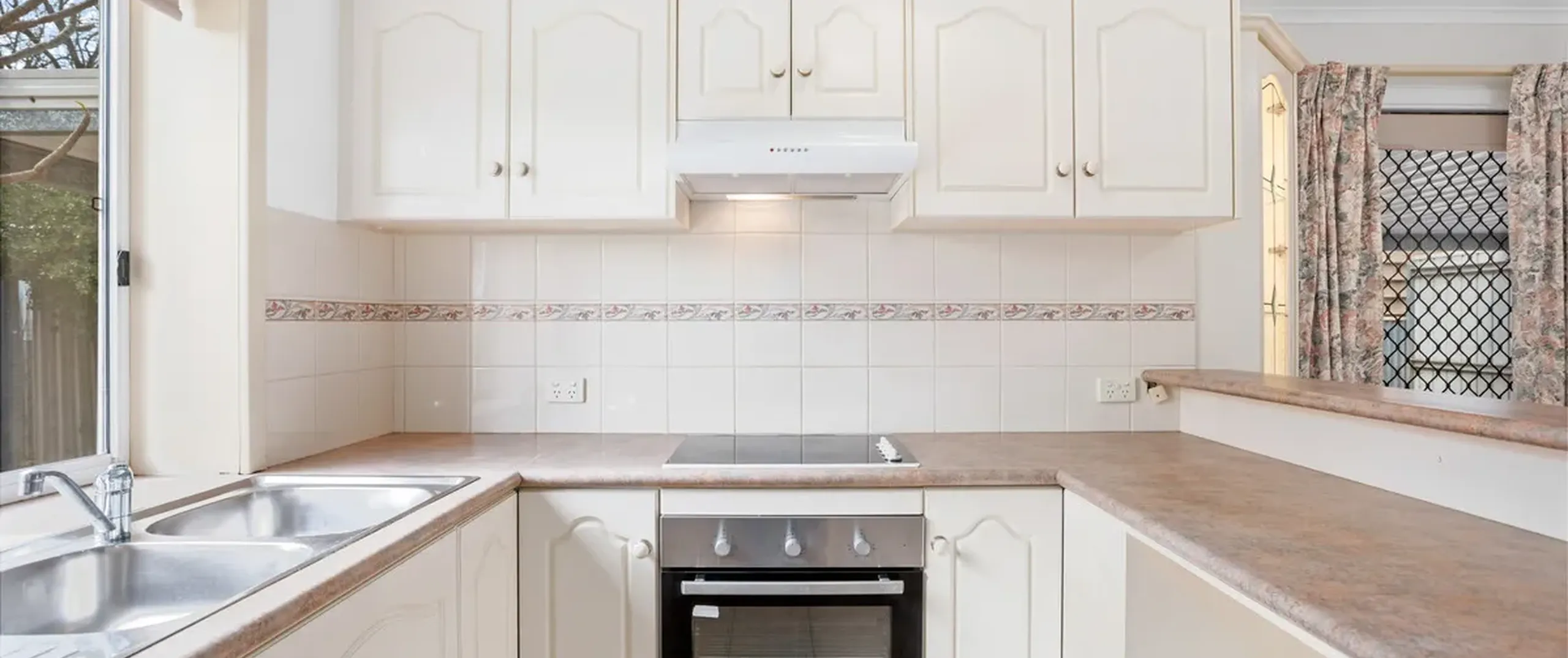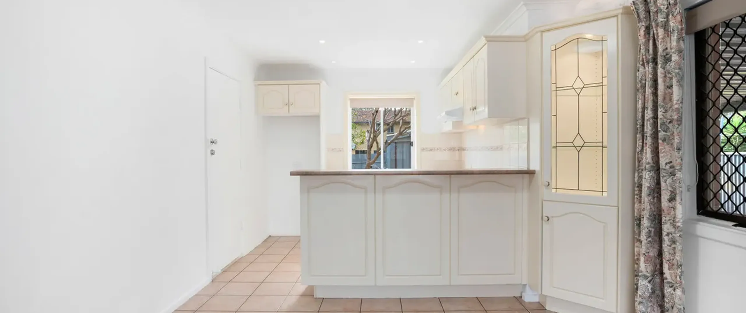- Homely kitchen boasting ample storage and bench space with adjoining meals area