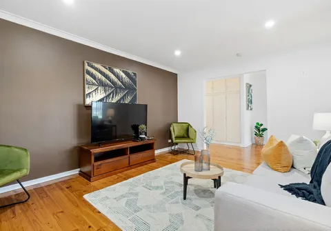 - Spacious living room, adjoining to the dining room with split system air conditioner and polished timber flooring throughout