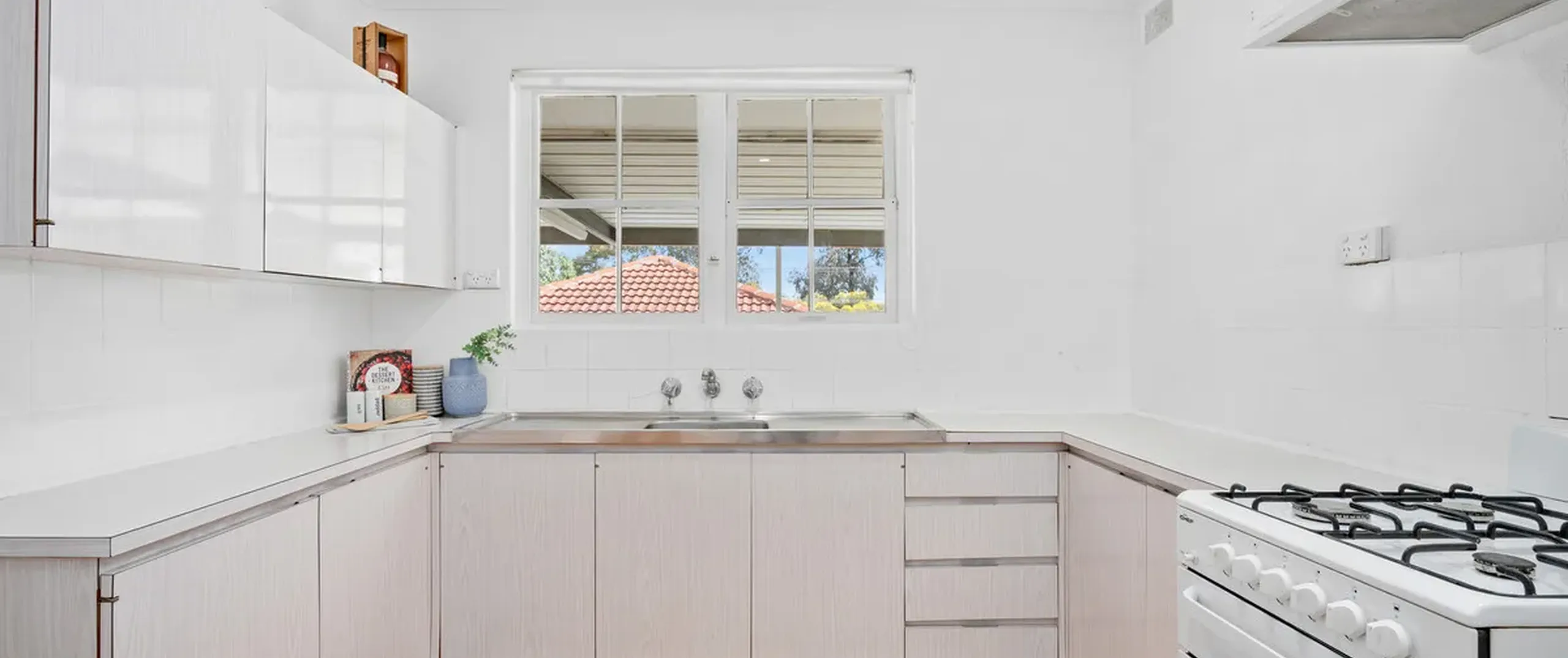 - Neat and tidy kitchen with standalone gas oven and cooktop, ample cupboard bench space and direct access to the dining room