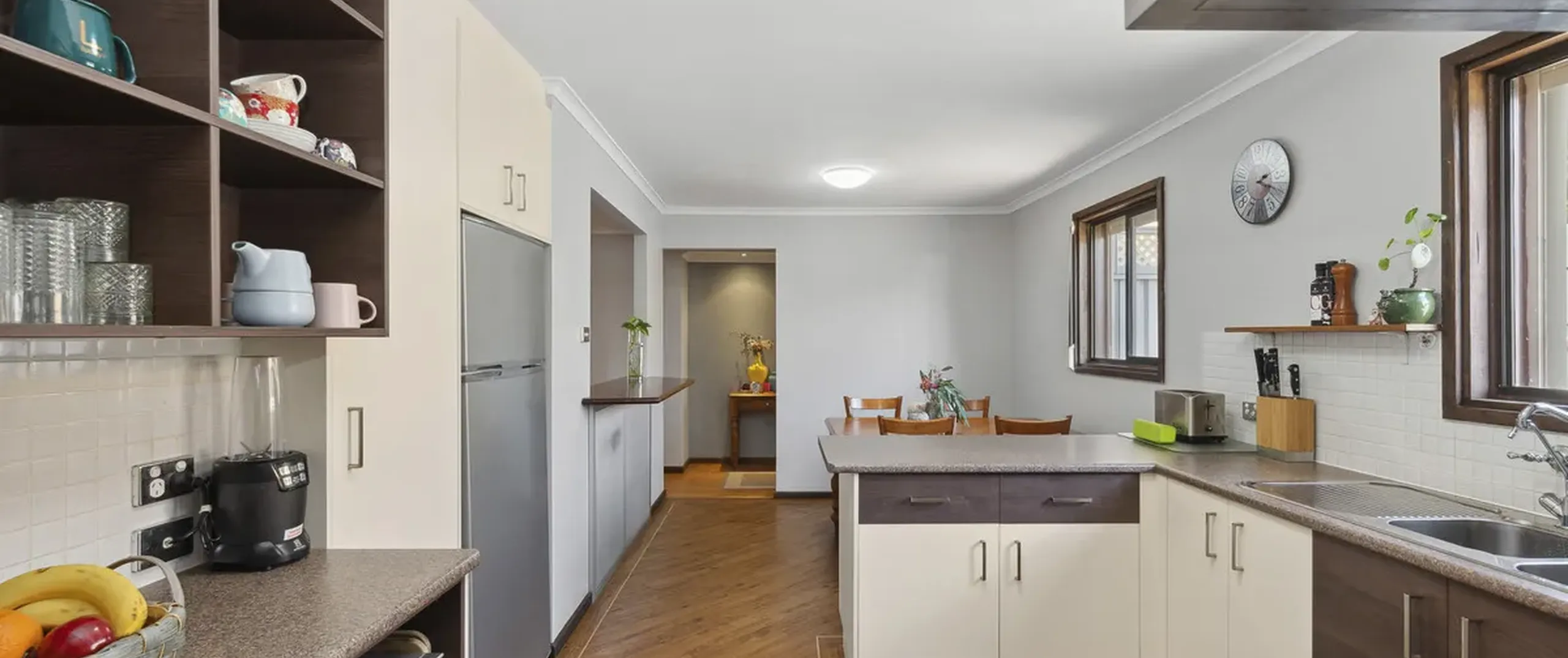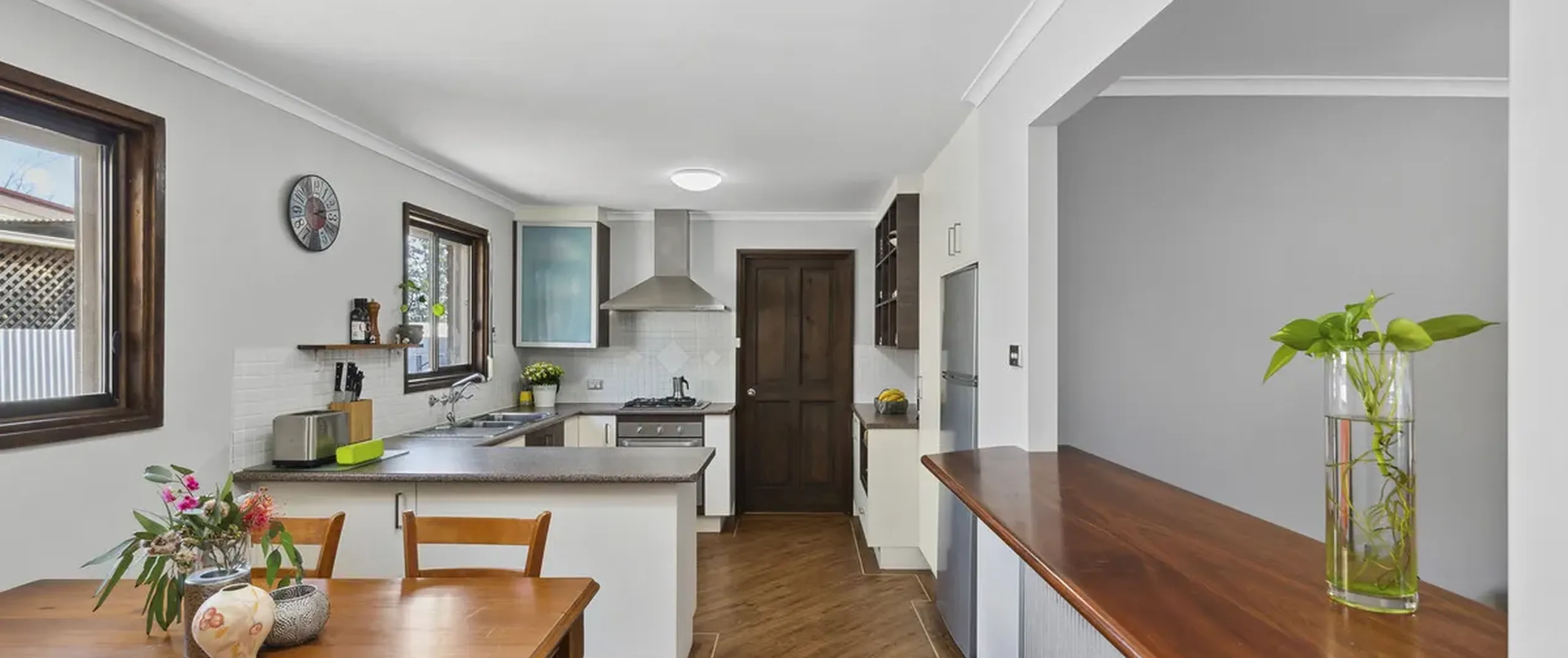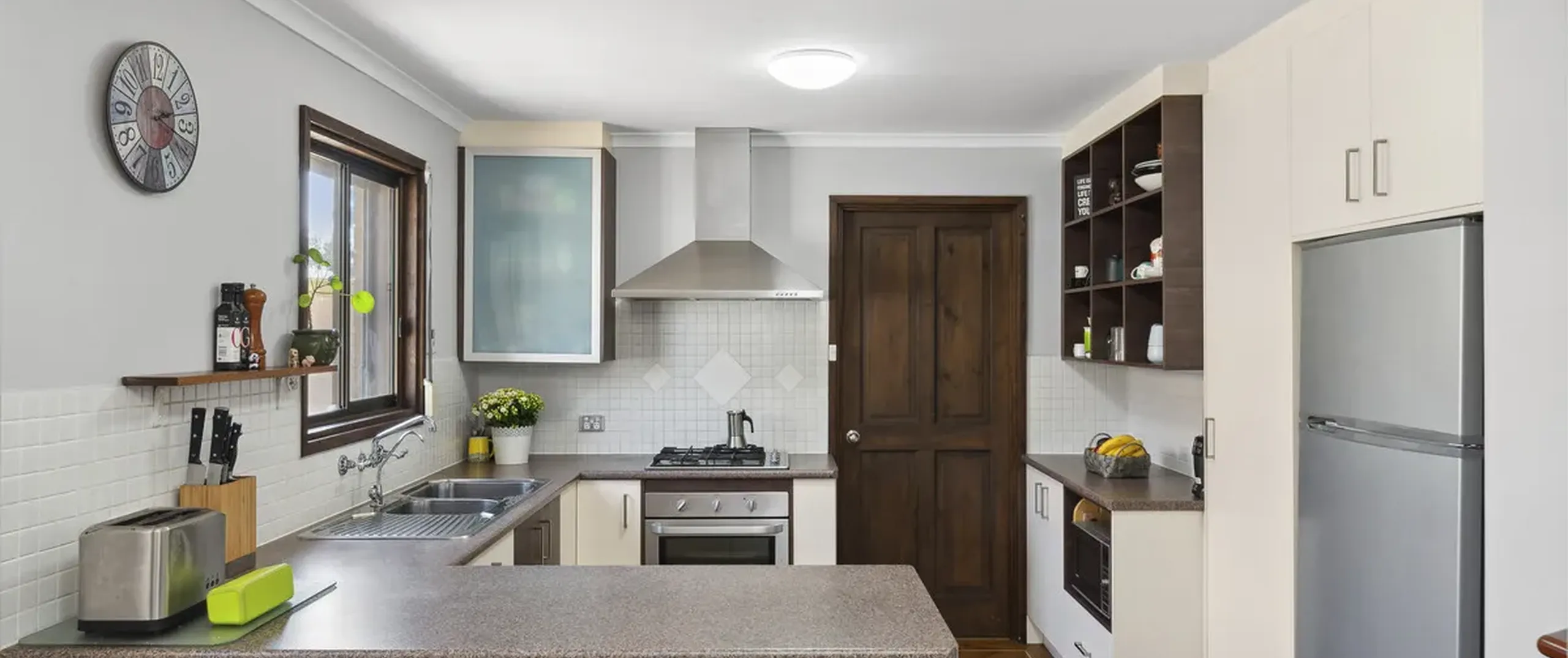 - Neatly presented kitchen with gas cook top and ample cupboard and bench space