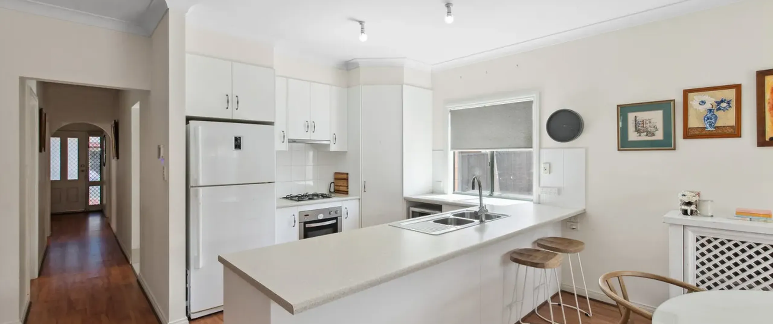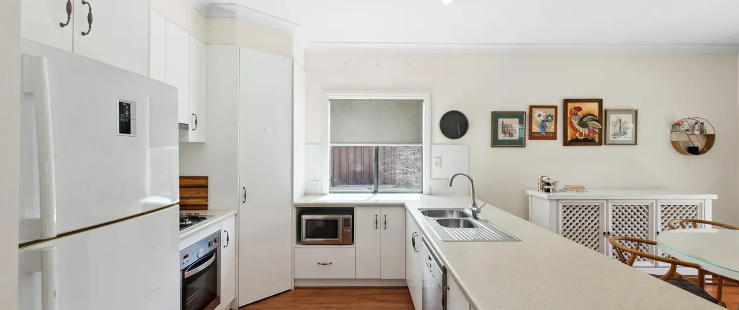 - Timeless kitchen with gas cooktop, ample bench and cupboard space and breakfast bar