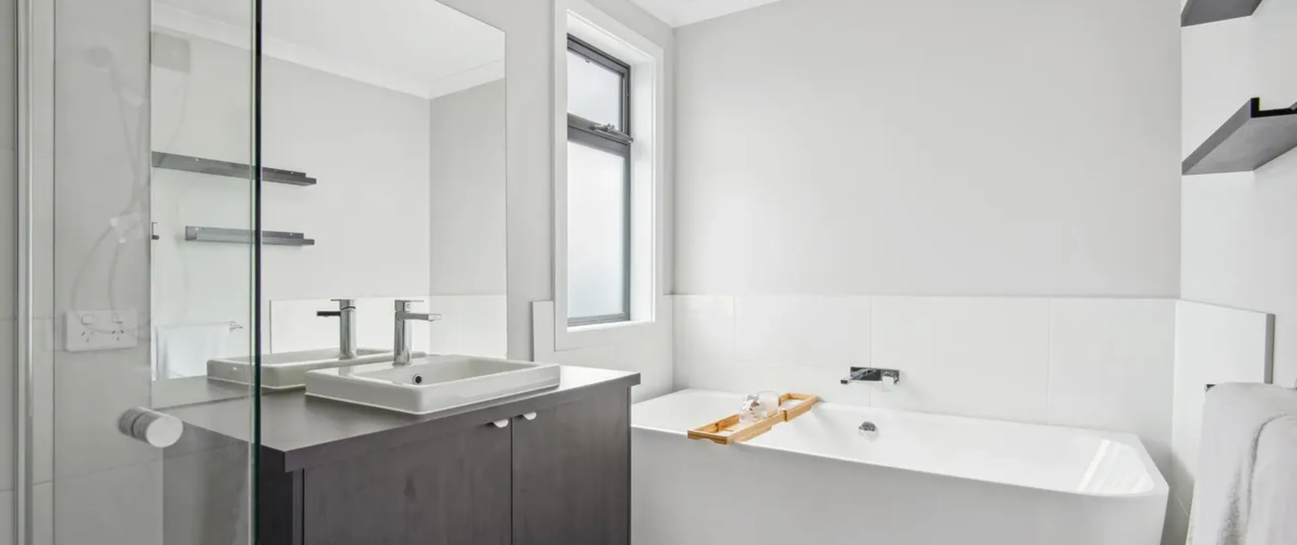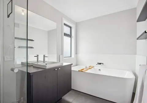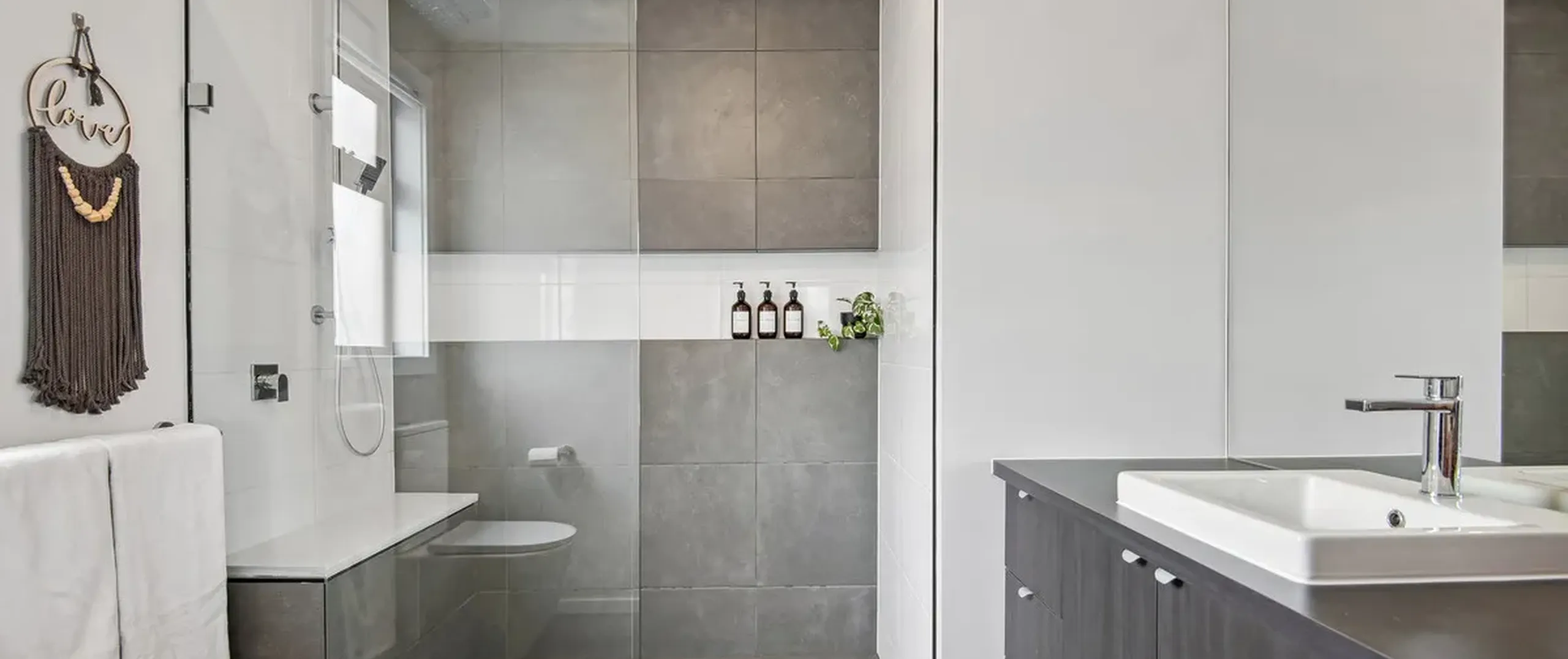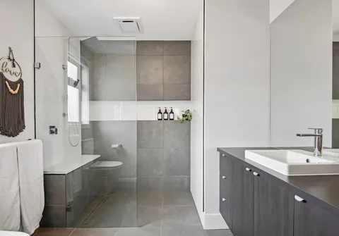 - Upstairs master bedroom with walk in robe and ensuite with stone composite seat plus frameless shower screen