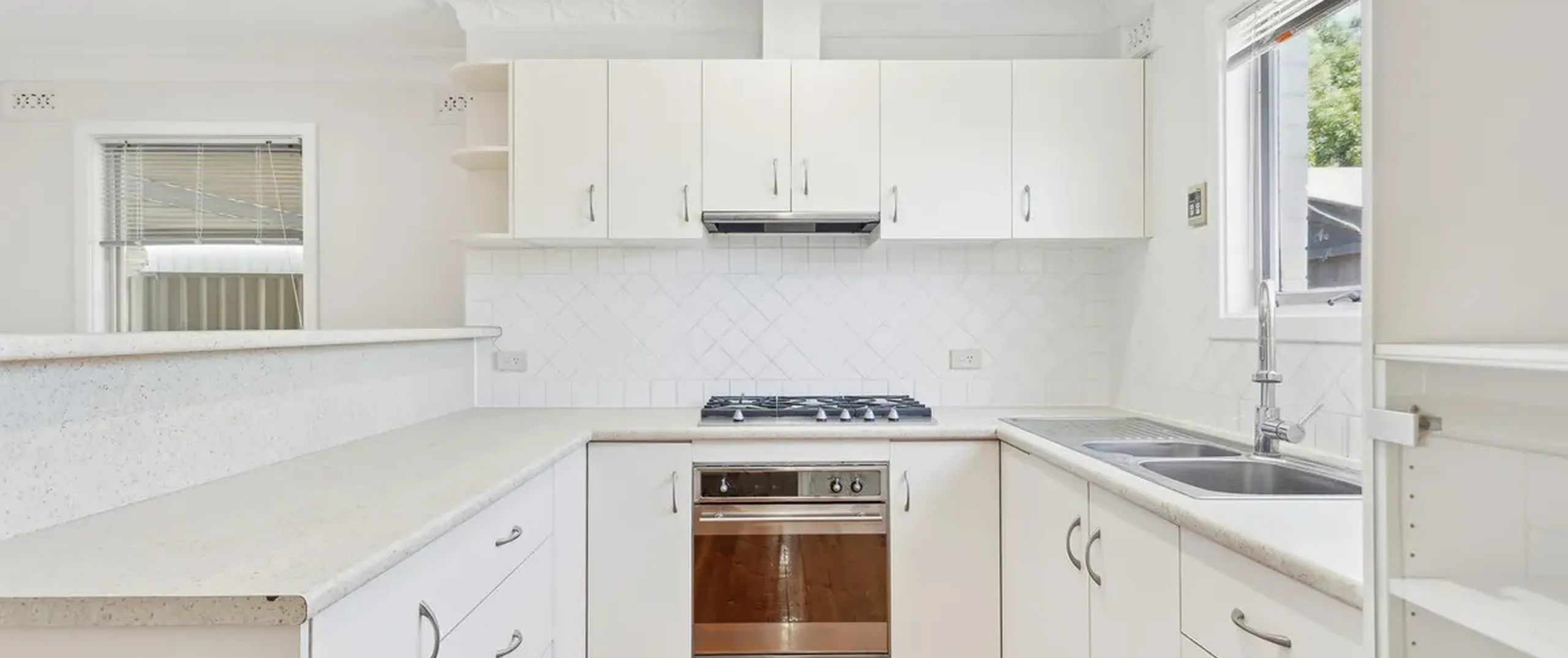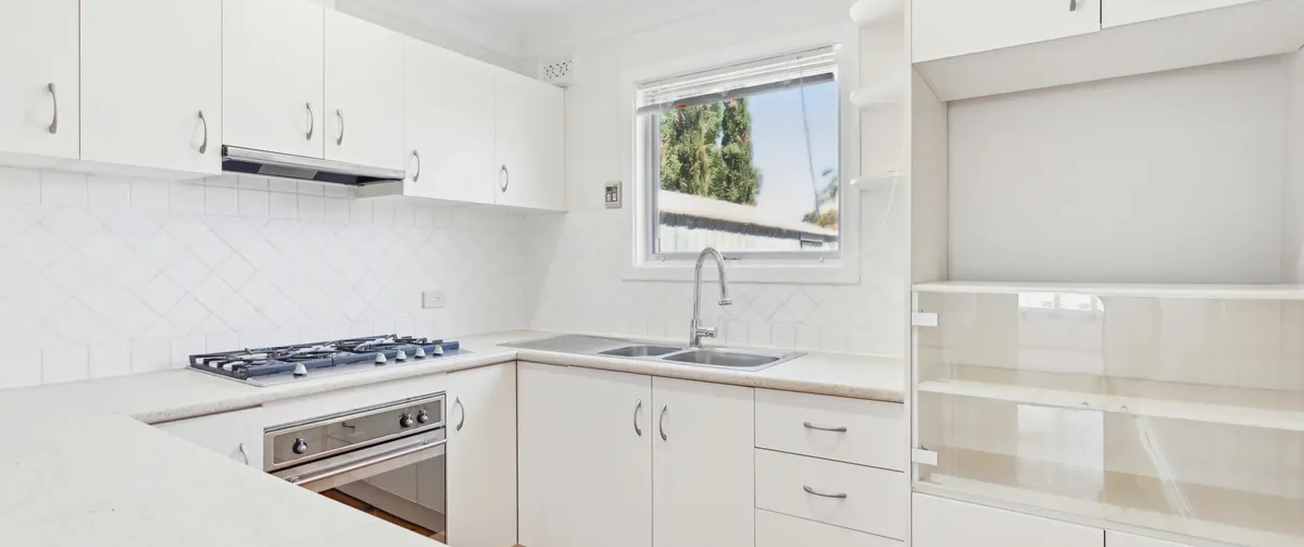 - Updated kitchen with gas cooktop, ample cupboard storage, and generous bench space