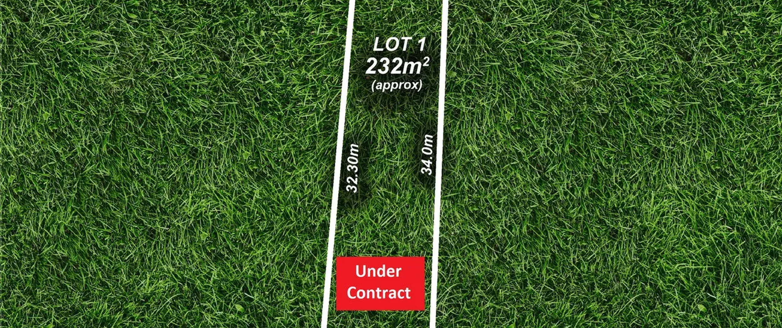 Lot 1: 232sqm with a 7.7m frontage (approximately)