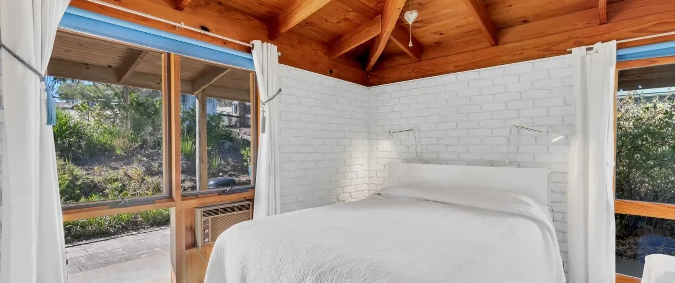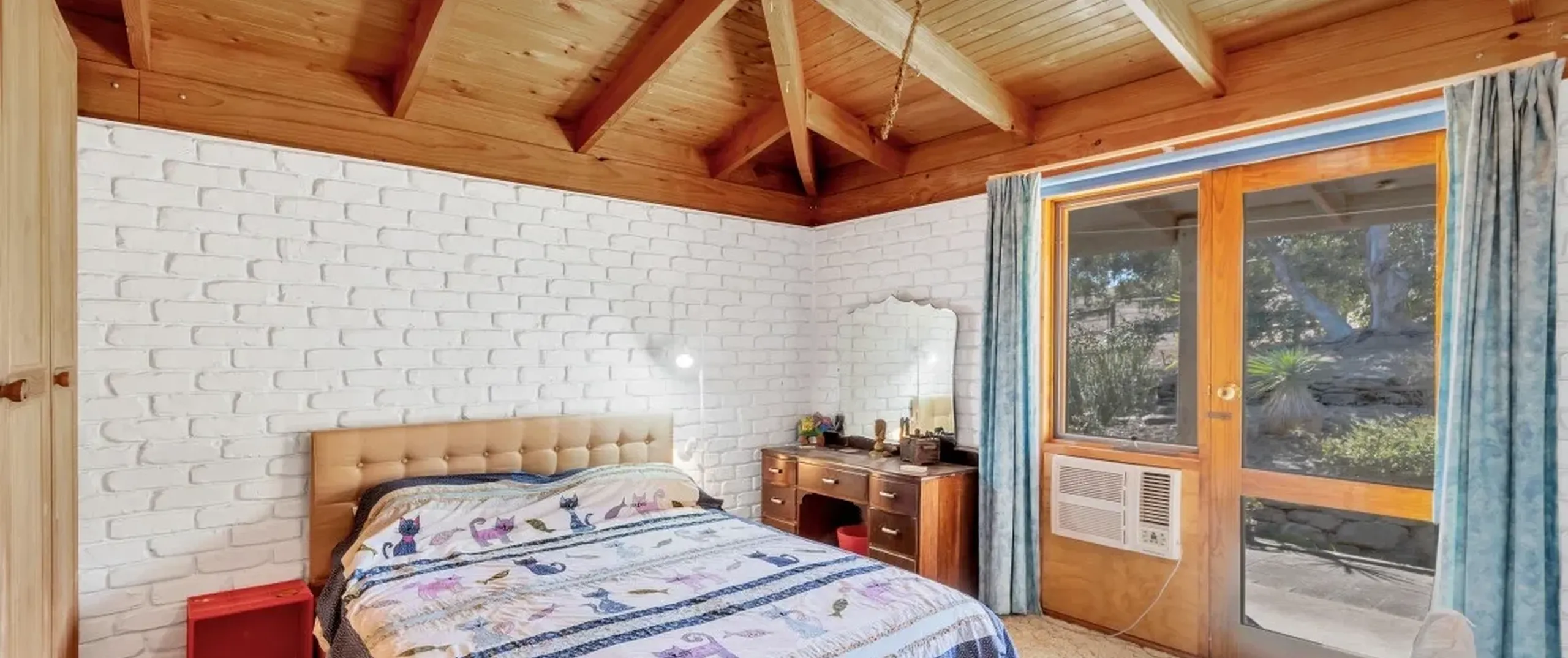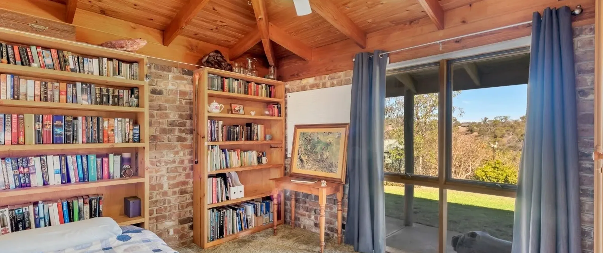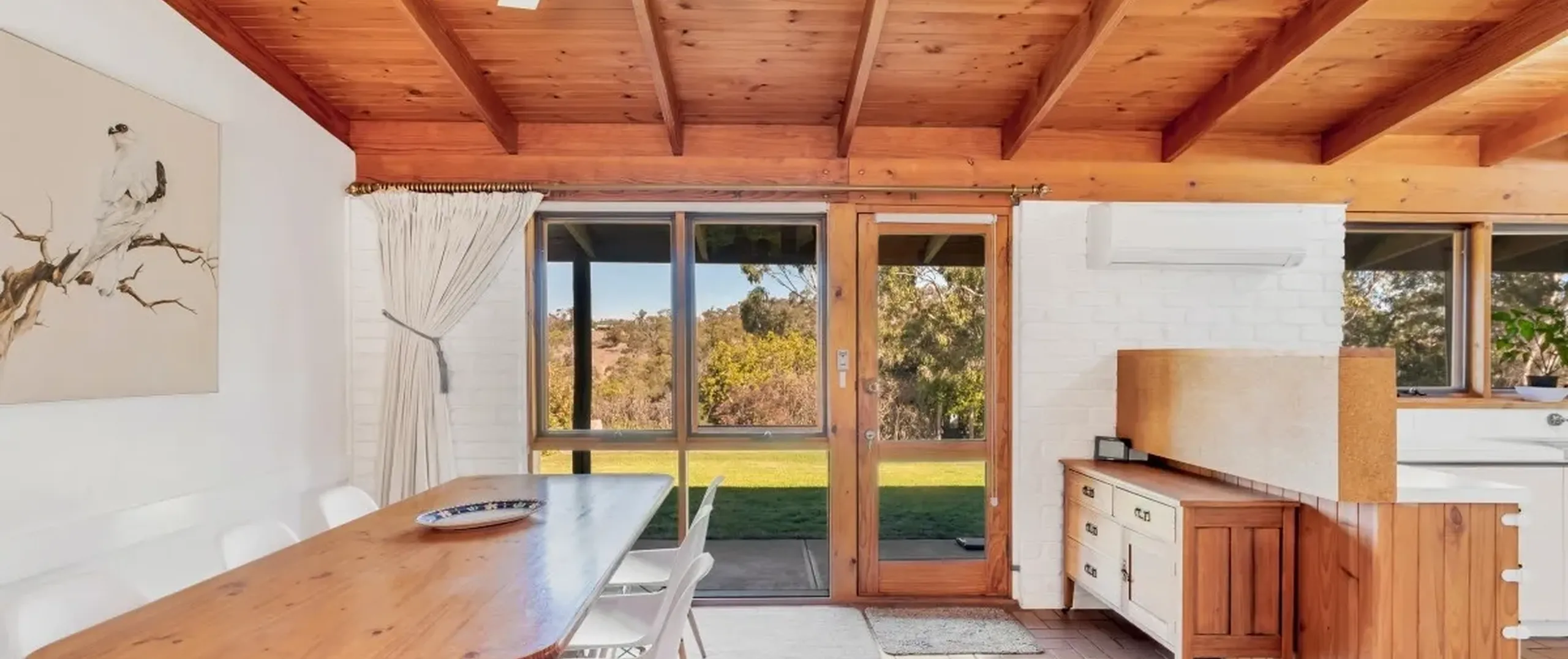 - Exposed brick walls throughout, high ceilings and timber beams creating a rustic ambience and feeling of space