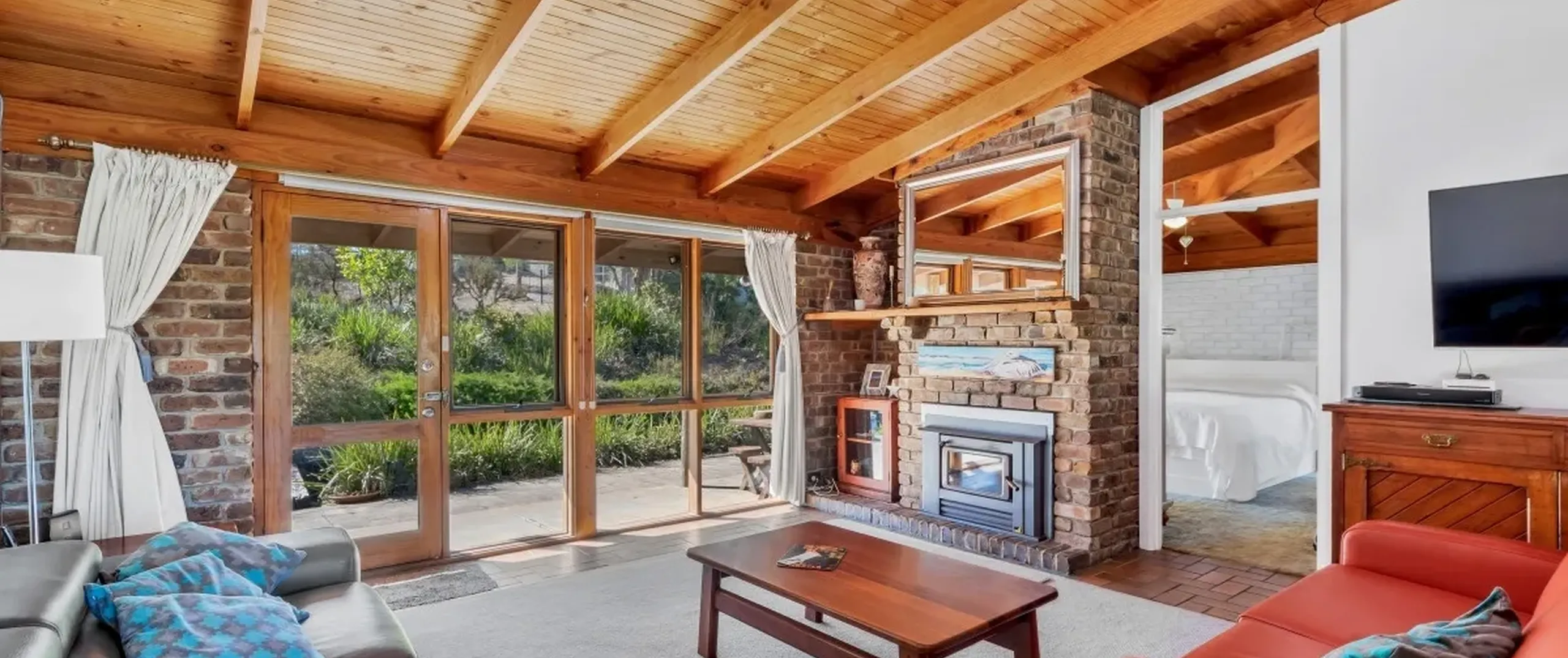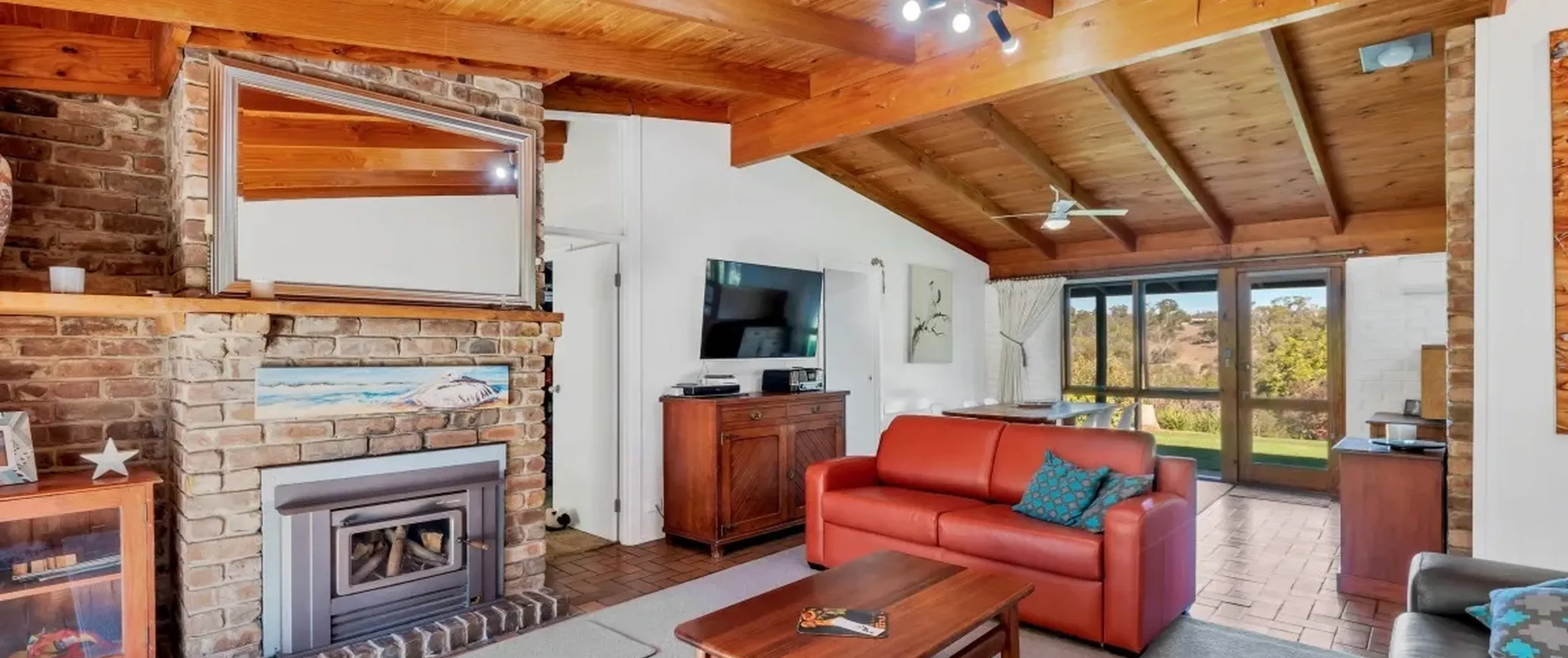 - Open plan living area with combustion heater
