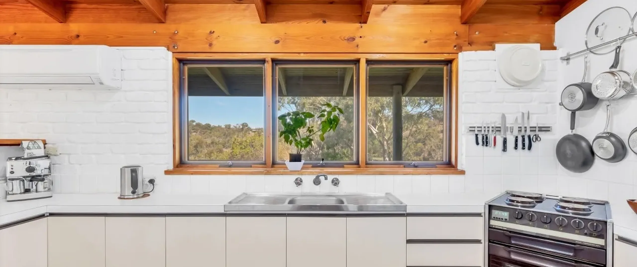 - Kitchen with walk-in pantry, ample bench and cupboard space and air conditioner