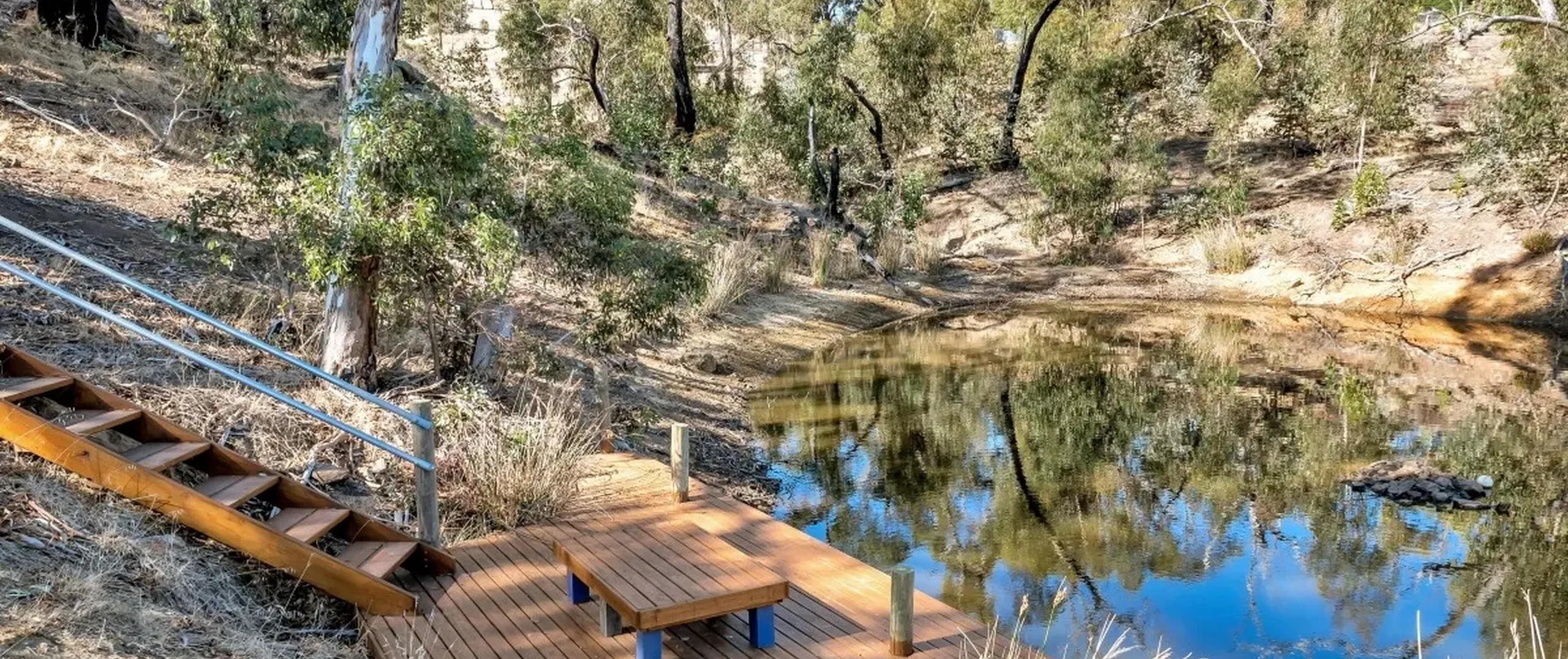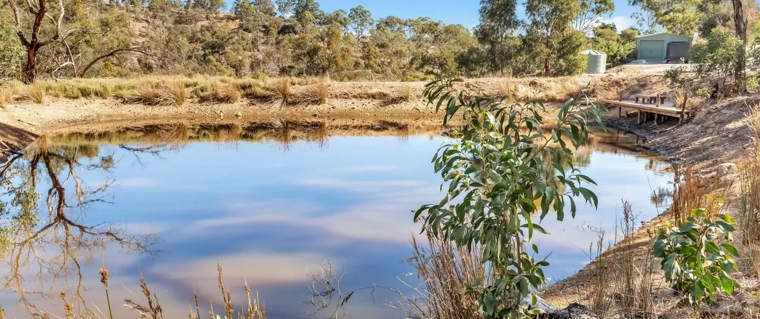 - 2 large dams, 1 with decking for boating, swimming or fishing