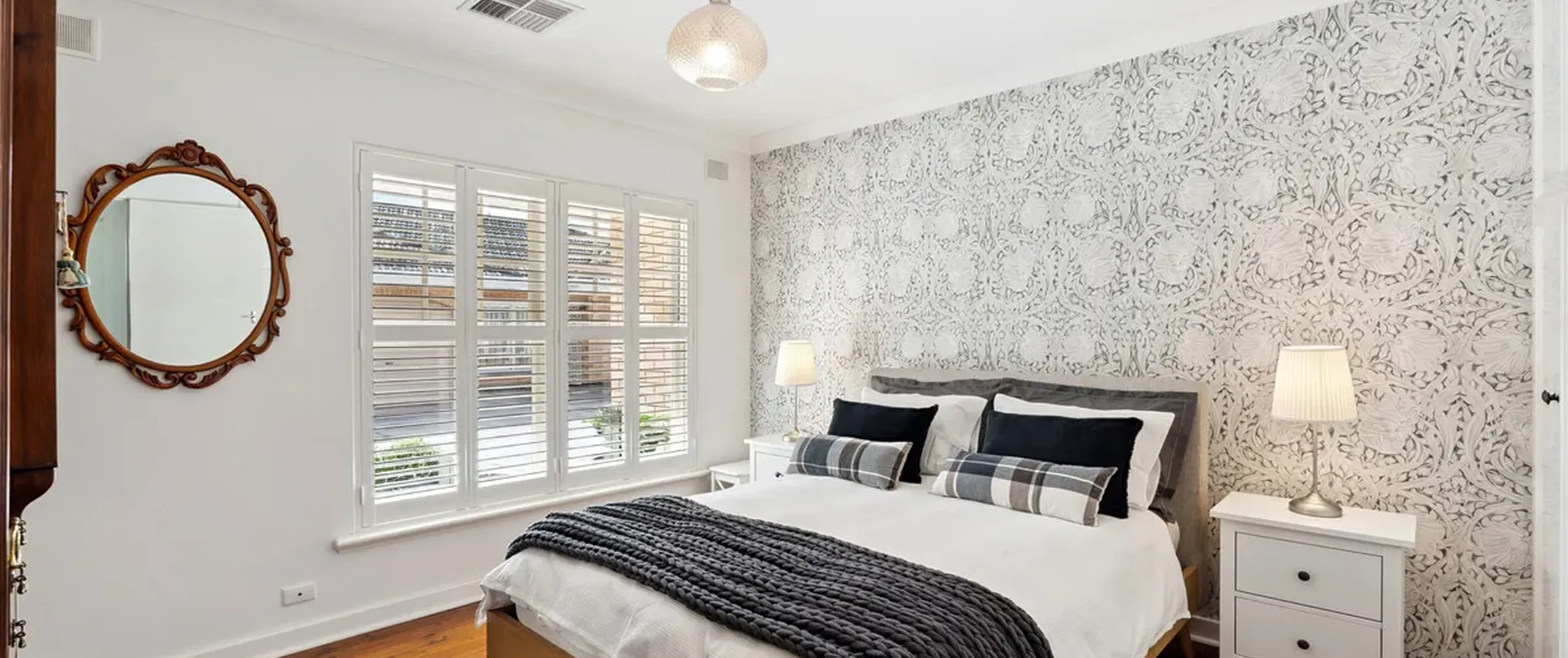 - Spacious master bedroom with built-in robe and plantation shutters